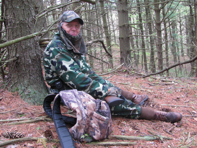 I elected to cross the hollow again and try another approach. (I tend to fear hen talk. I treat hen yelping as a potential hunter so I try to avoid any situations such as this.) On the next hill top,I sent some seductive hen calls and was immediately answered by two gobblers and too close for comfort. I sat down in rapid preparation knowing this calling site choice had some issues. There were some down trees and I feared these obstacles could be a deterrent with the birds approach. I had no choice since the silent birds were, no doubt, sneaking on in. Another twin gobble and there the two longbeards were coming on in. I was ready!
