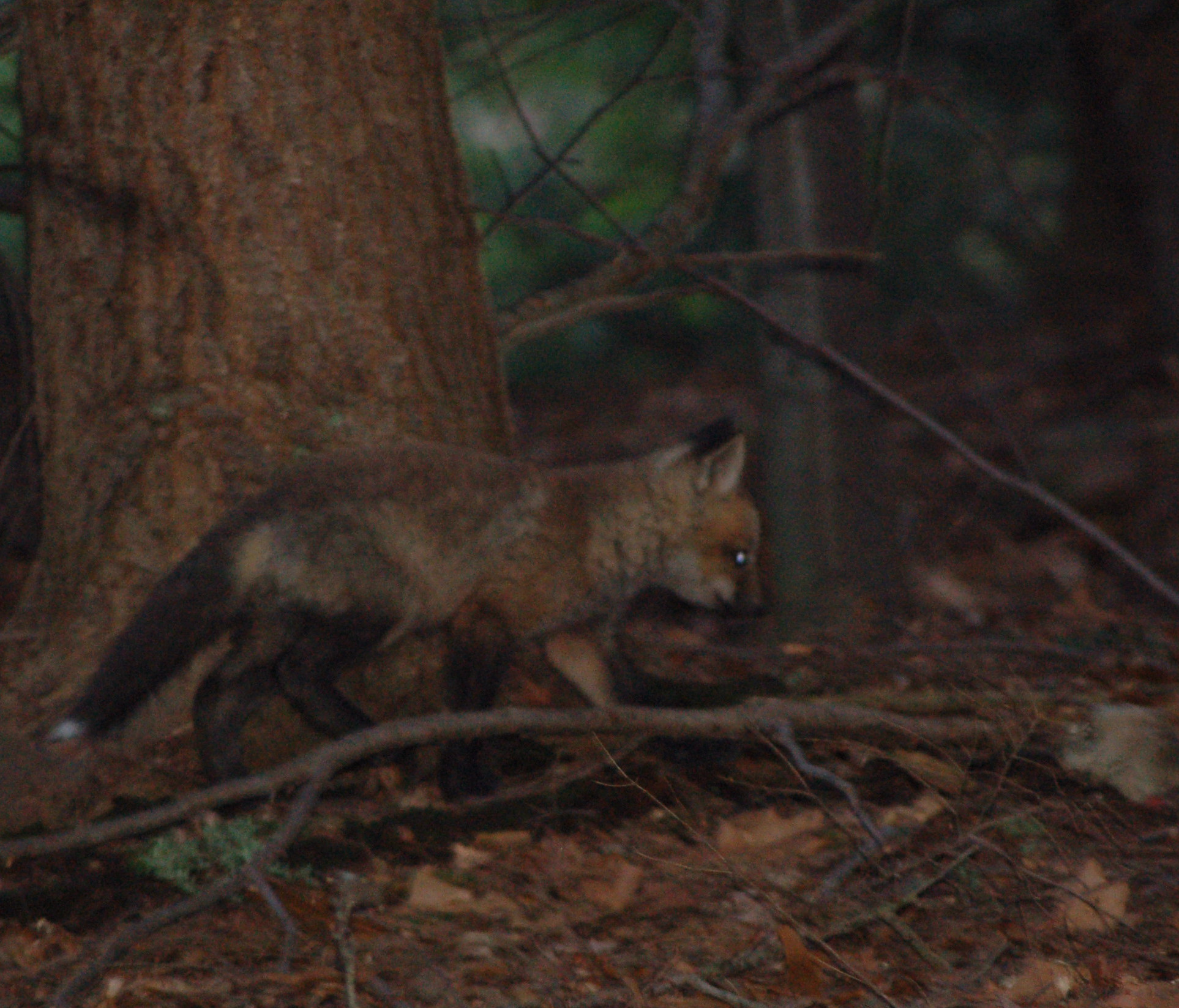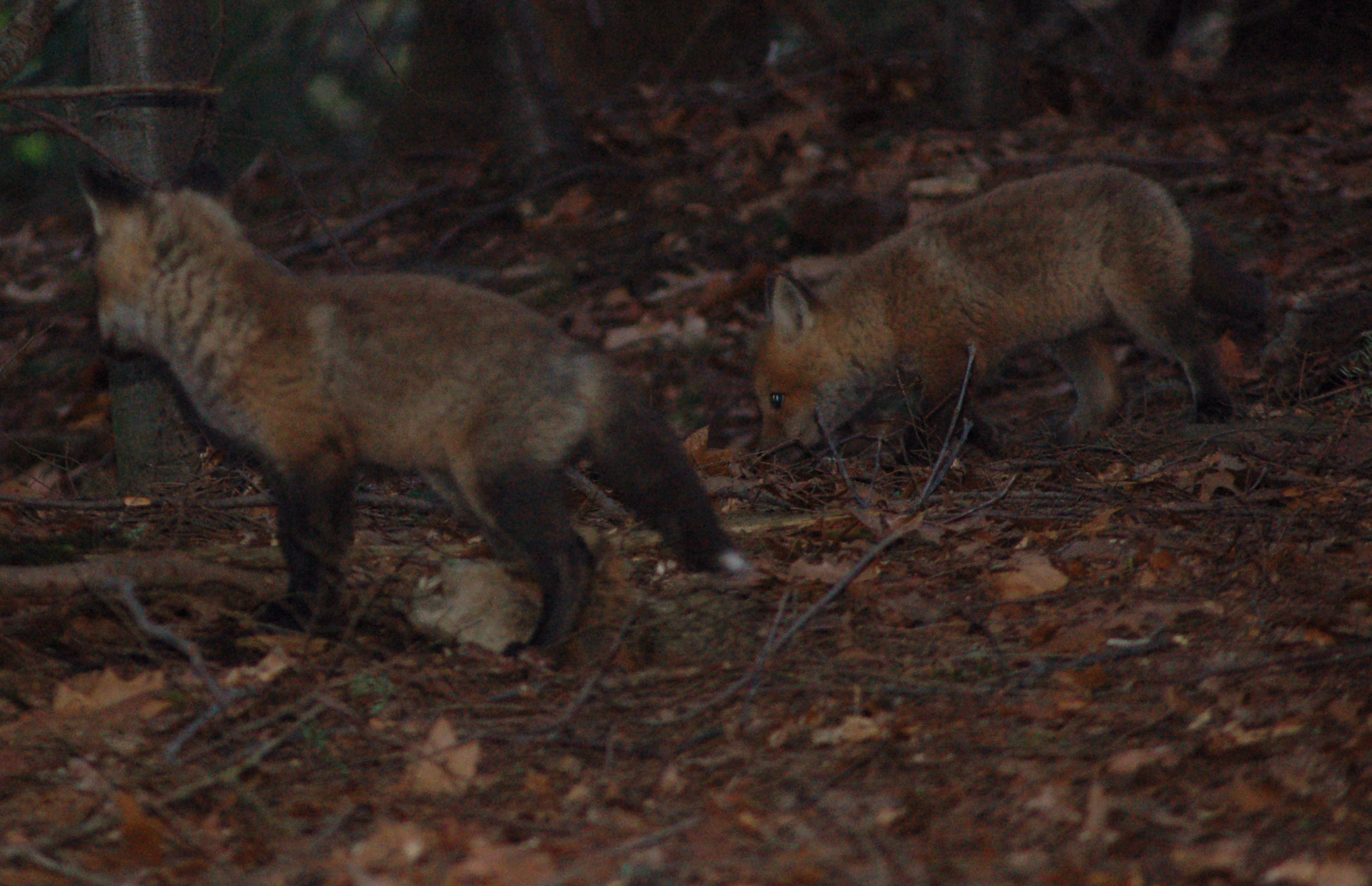 I walked away from this site to explore my options remember I needed to watch the time. While walking and planning I discovered some fresh bear sign and saw a rabbit and squirrel. Suddenly, I saw a red fox with puppies. I placed my shotgun on the ground and readied my camera. What a joy to watch these four little puppies romp and play. I managed a few photos.