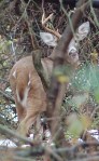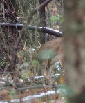 As dawn lightened the area we proceeded farther down. I heard a little bit of turkey talk and moved in for a break. Apparently I failed for Bob and I set and called for over an hour and did not hear any lost turkey calling. However, we saw two more small buck. I took over 30 photos of the one with most photos being acceptable.