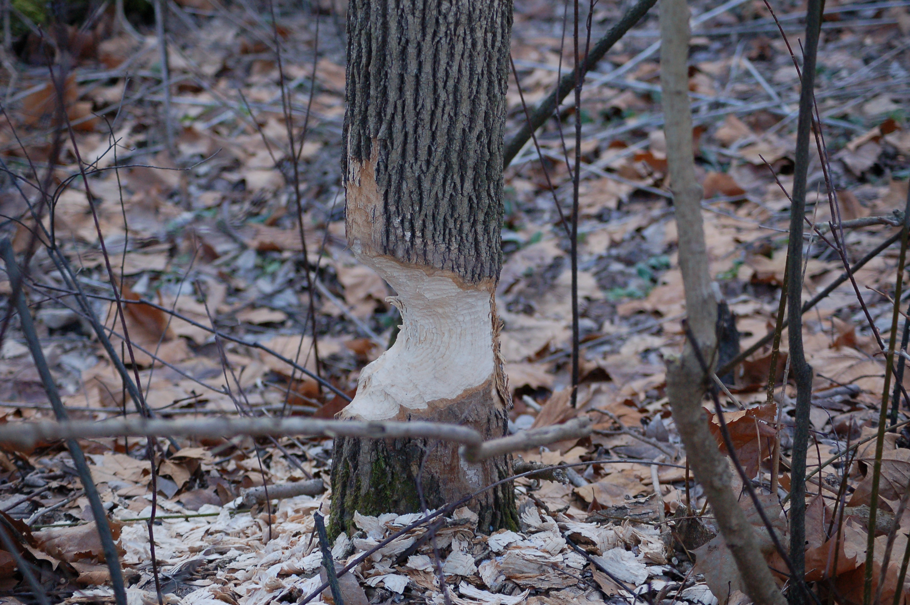 The wooded ares between the trail and the river had many signs of beaver activity. Some were old and weathered and others rather recent. These beavers are bank beavers since they usually build their lodge against the water’s bank and tunnel.