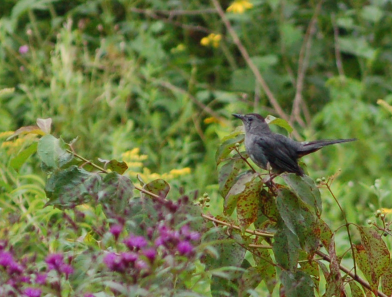 Birds were common today around the flowers. I saw goldfinches; catbirds and various other species. I saw 4 deer in total. One was a doe with fawns.