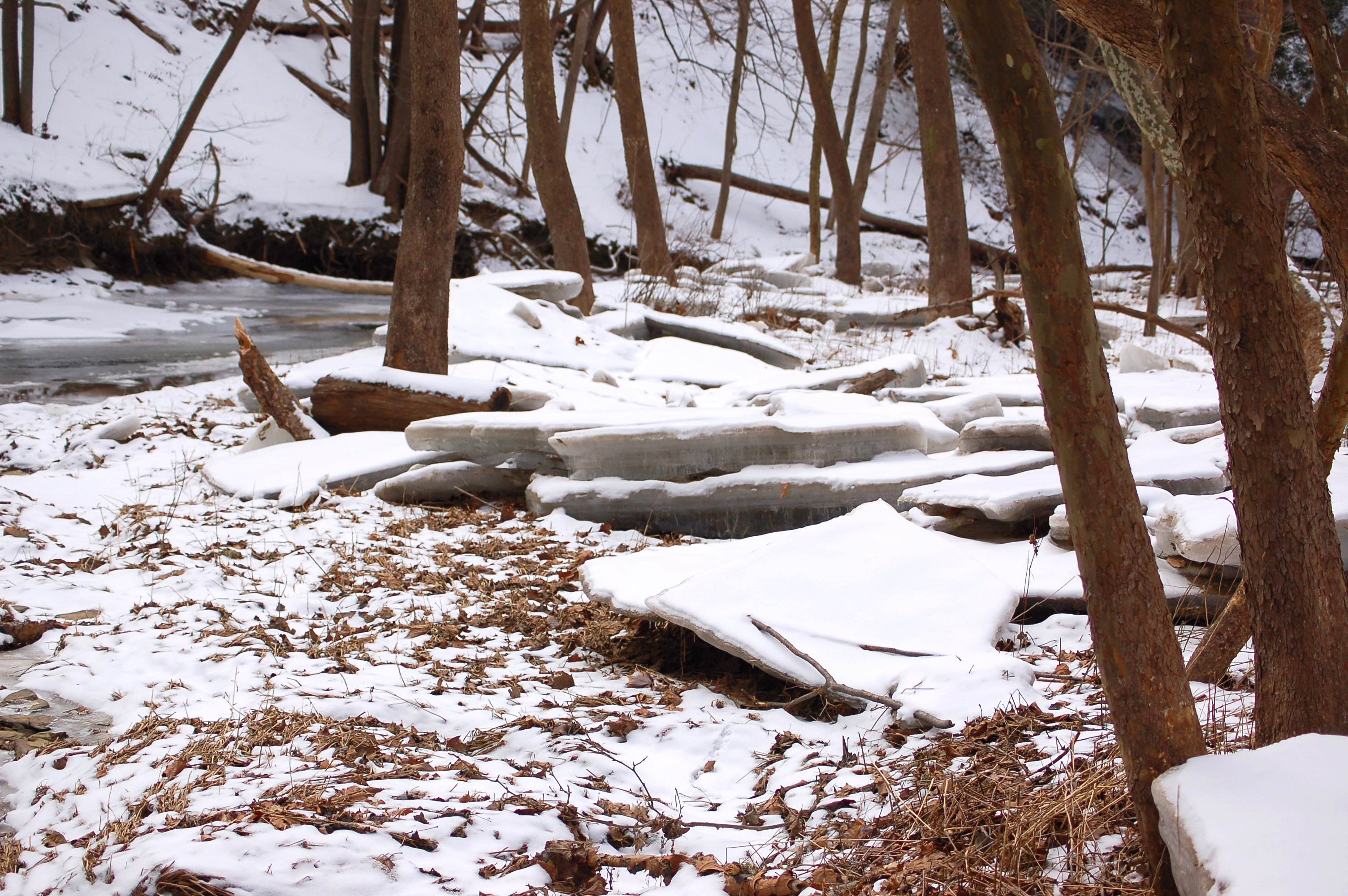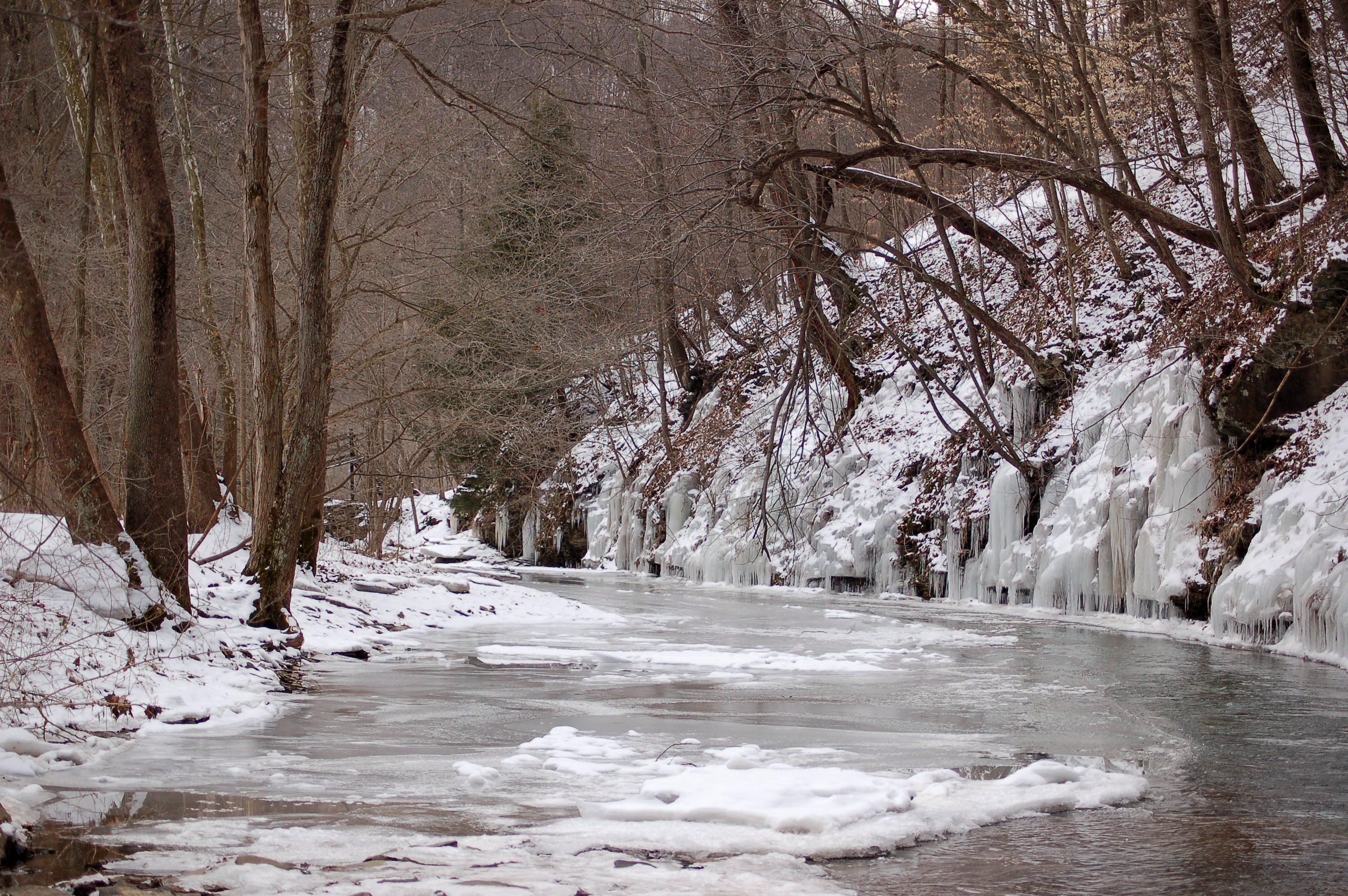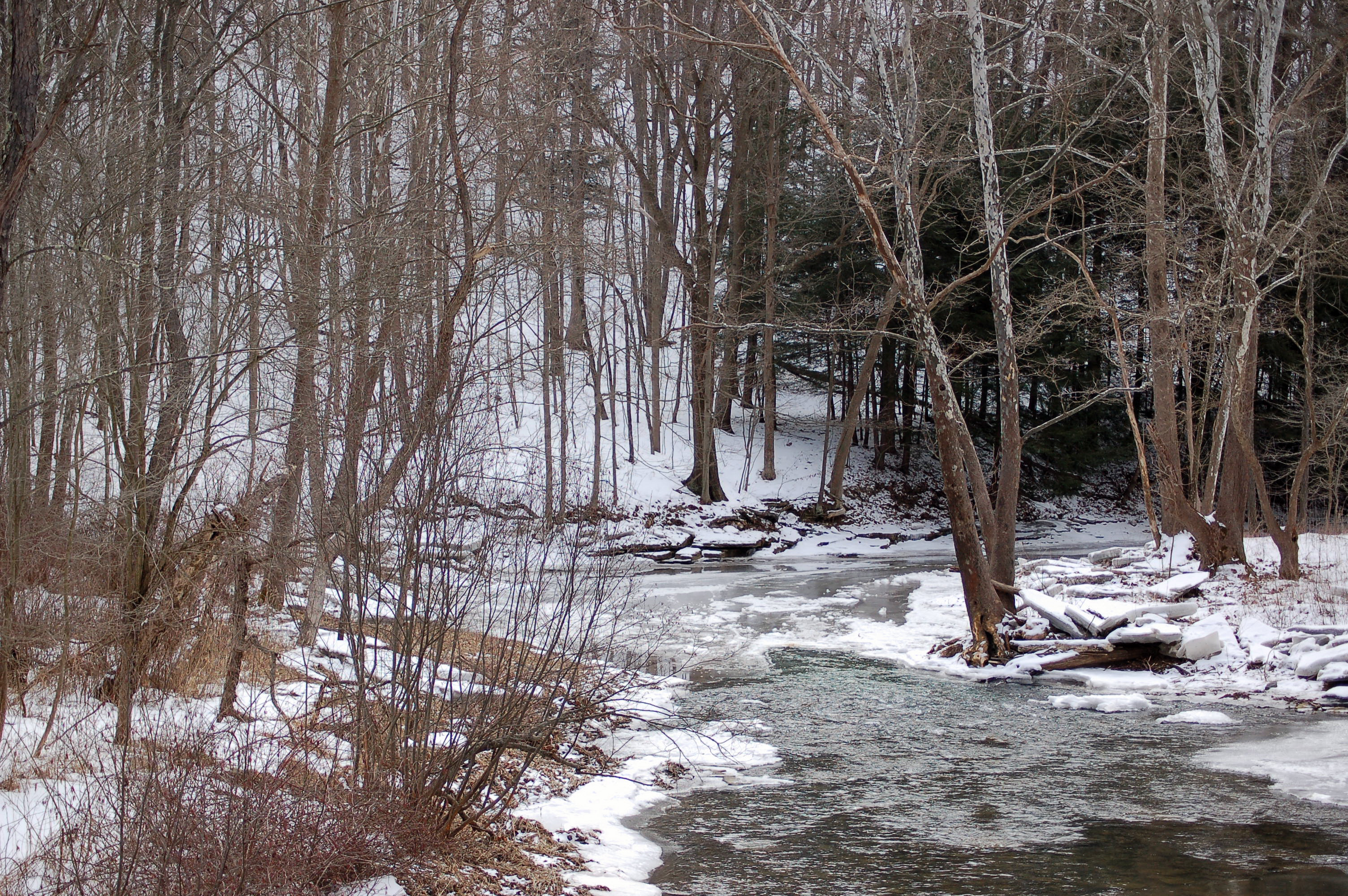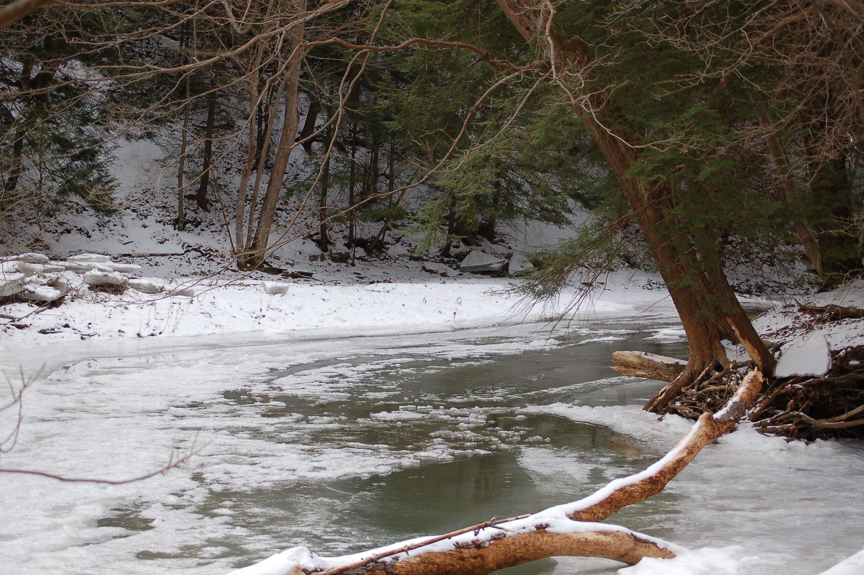 The creek, an approved trout waters, was beautiful with the whites of the snow often contrasted with hemlocks. Icicles hung solidly from the rocks bordering the creek. We would take a hammer and remove ice from such overhangs to make home-made ice cream. Great memories!