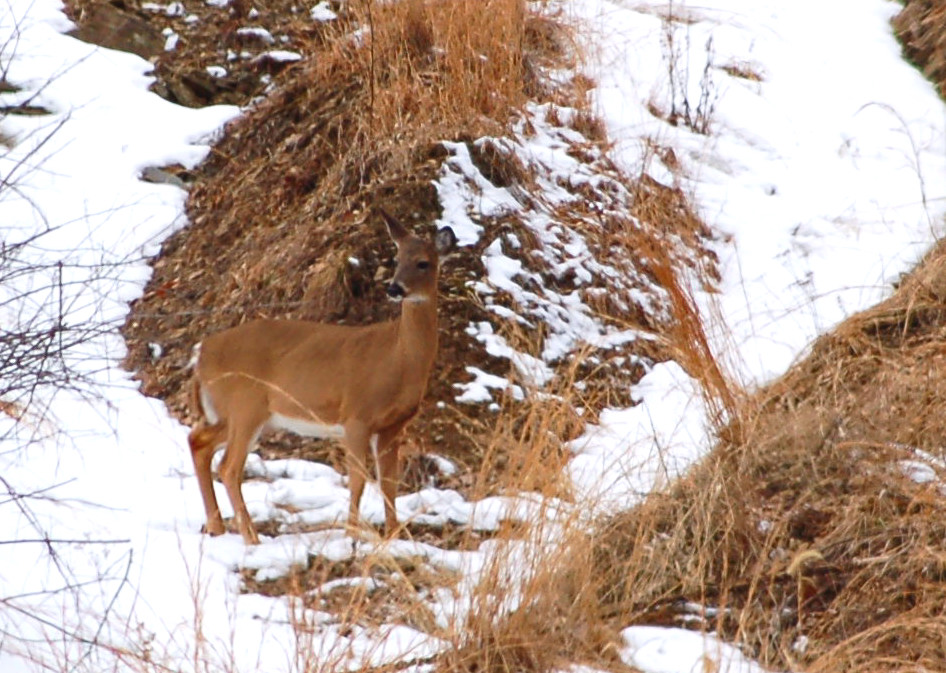 Wildlife sightings were sparse today. However, I did see ten deer at three different places. I, also, witnessed a flock of about 12 turkeys flying from one hill top to another. I wondered what had happened to cause their escape.