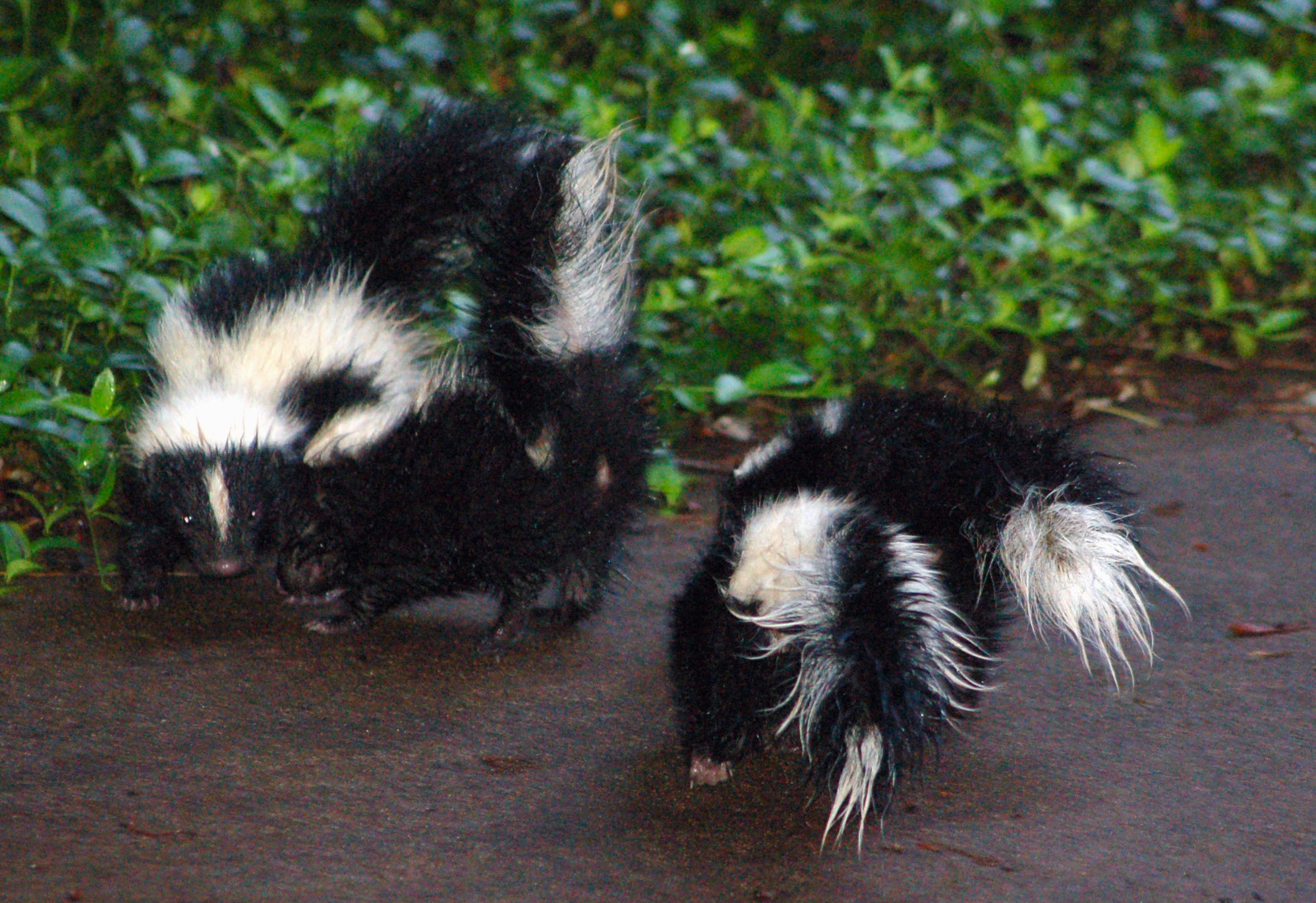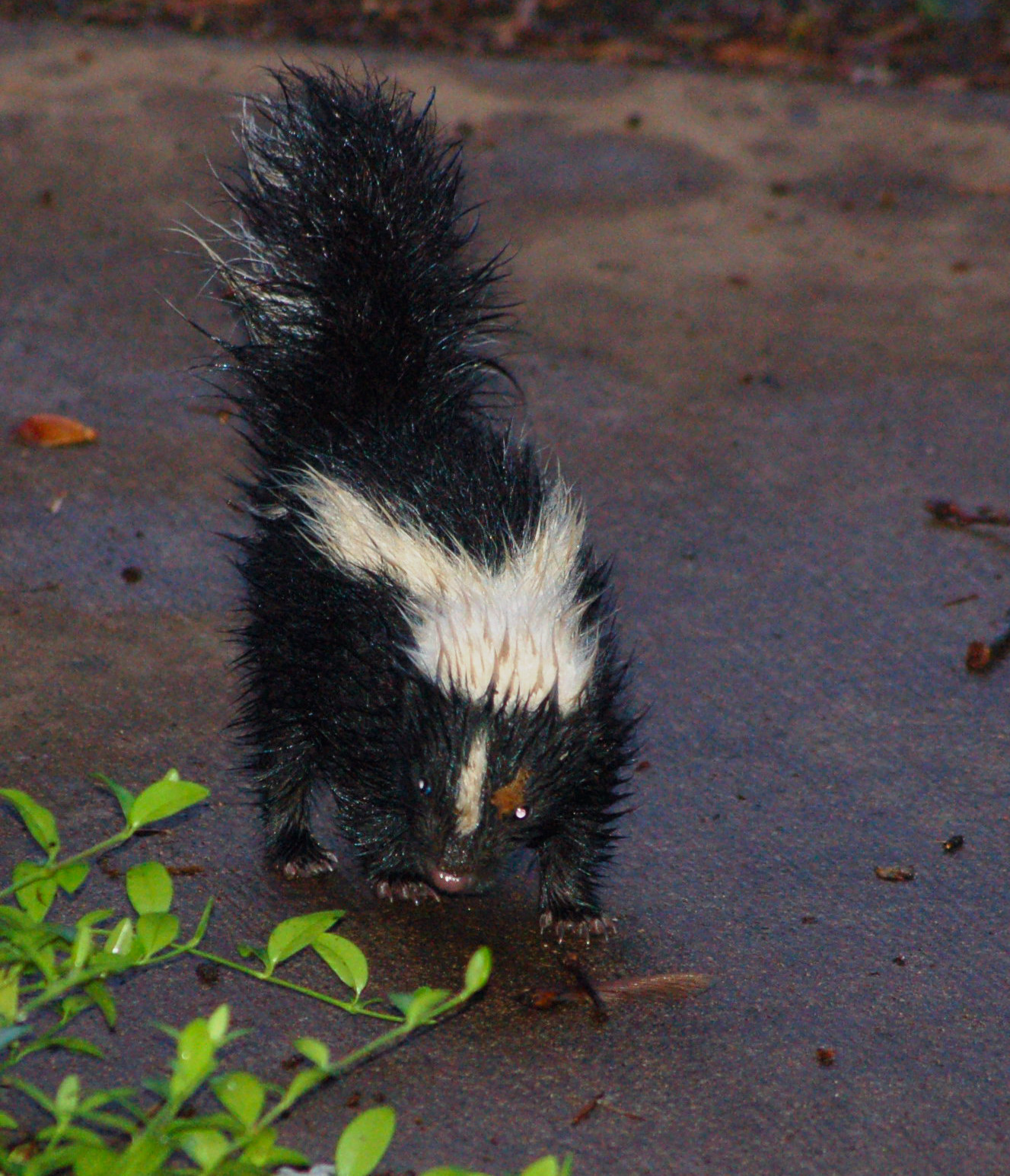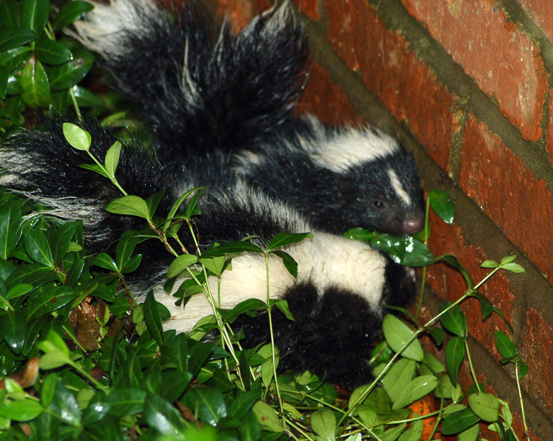 I looked outside early this morning to see some movement along a brick wall bordering the driveway. I realized the movement was from baby skunks. In fact, there were four of the little fellers.