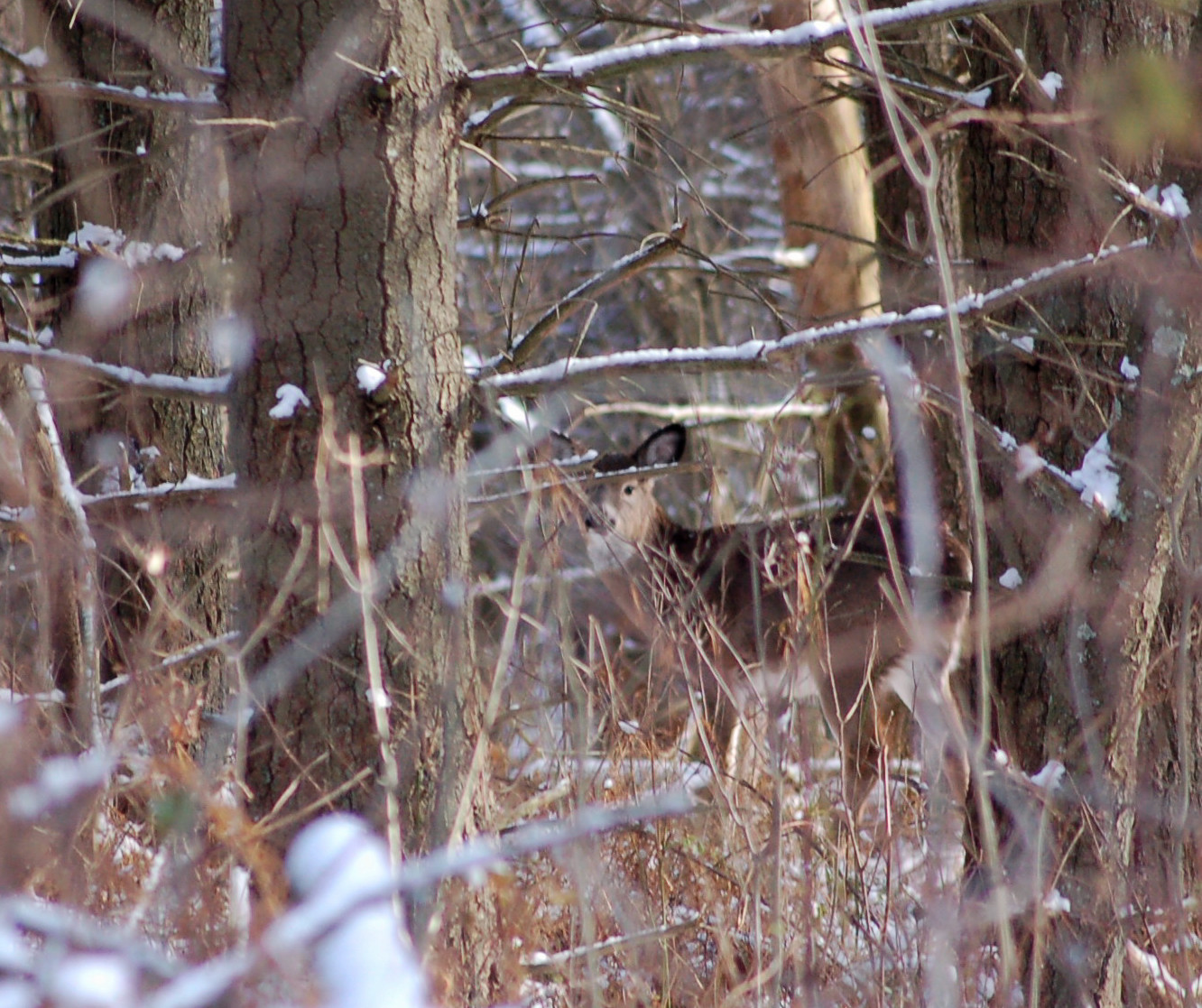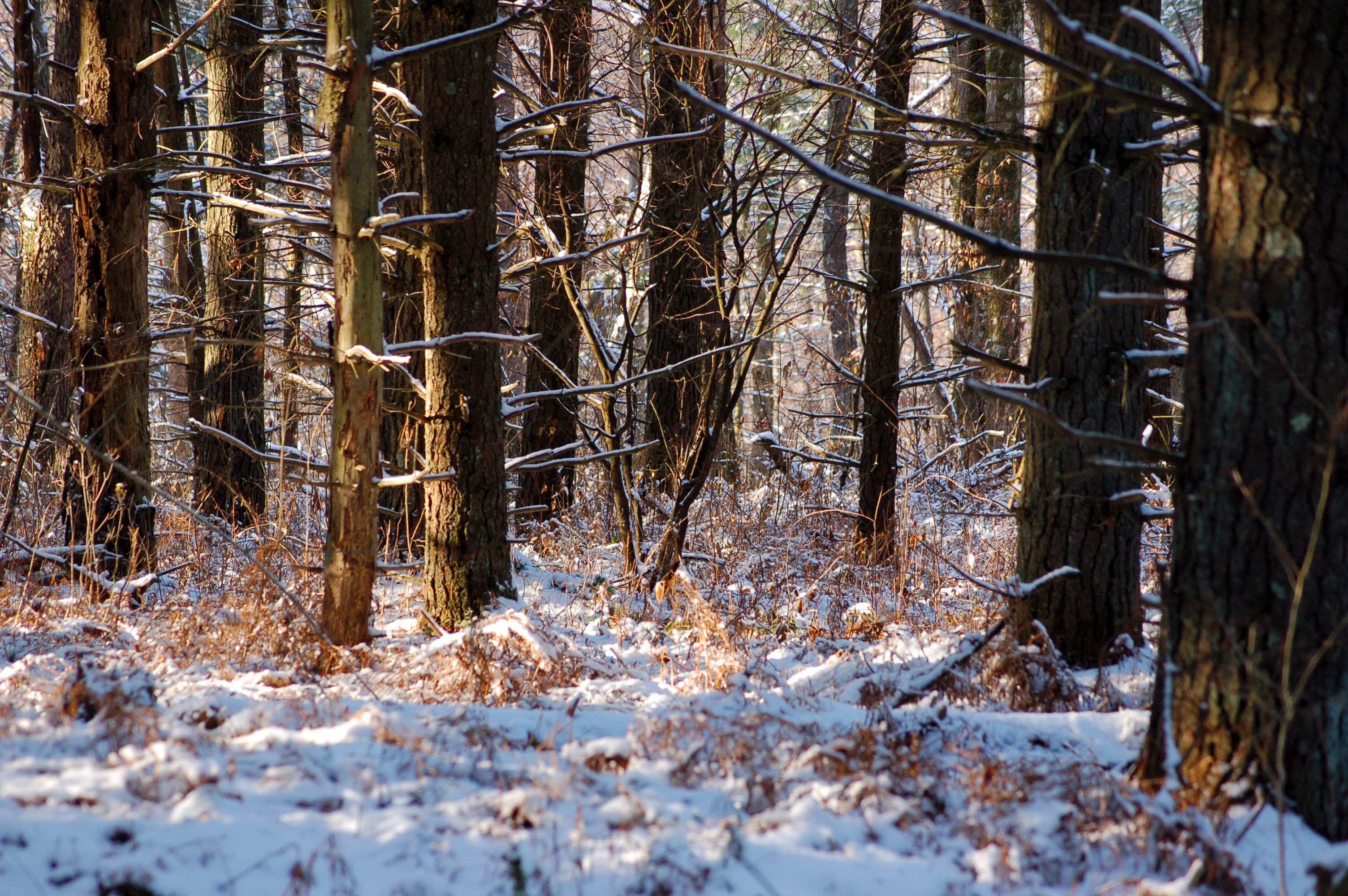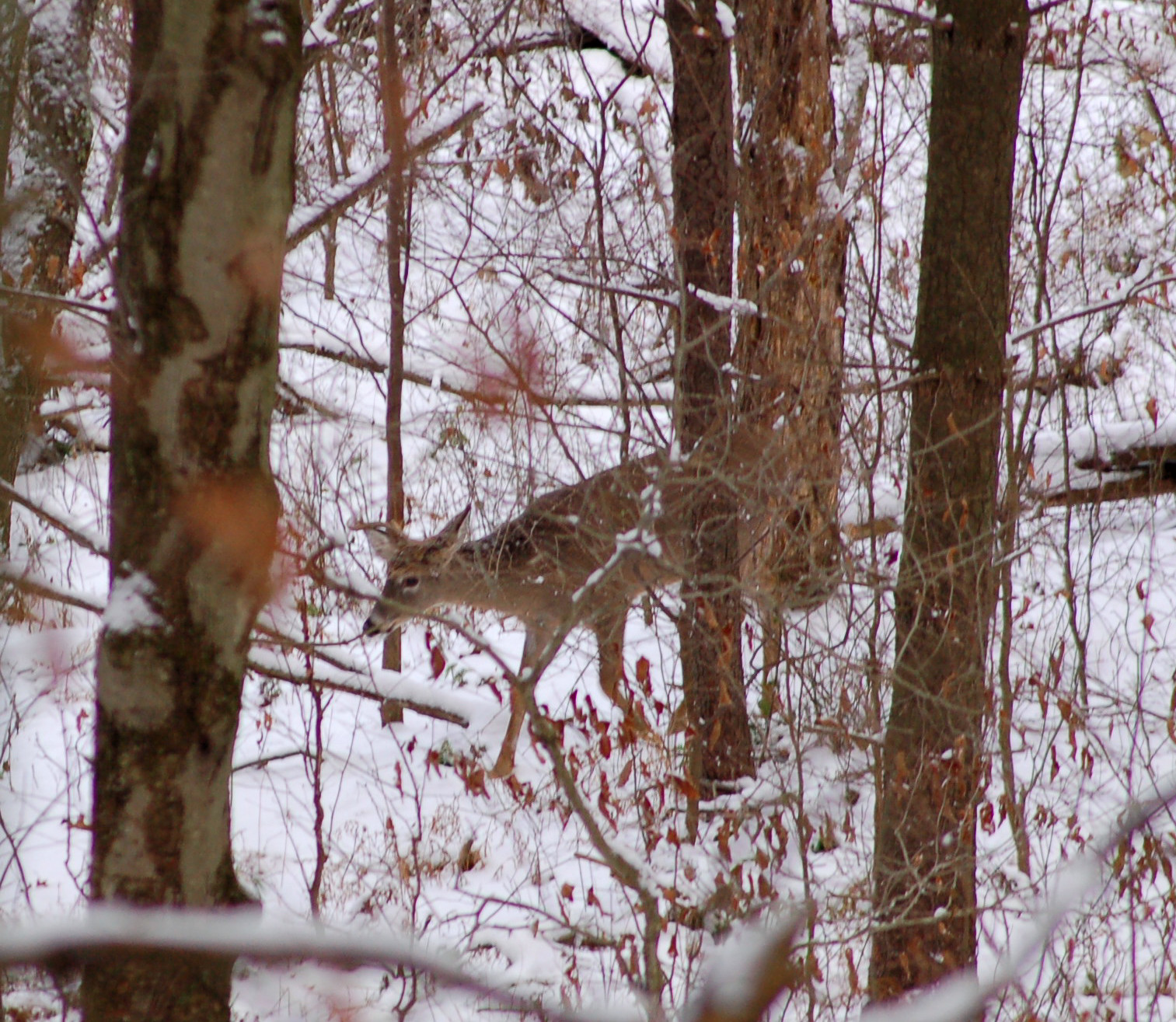 The plan was to start a diagonal cut across the woodlands with me maneuvering with zigzags to cover a lot of territory and find those tracks. However, the plans were to be changed for the expected flurries overnight had become enough to cancel out any evening tracks. the plan, now, was to do the same, but my zigs were going to need to cover much more land than my zags.