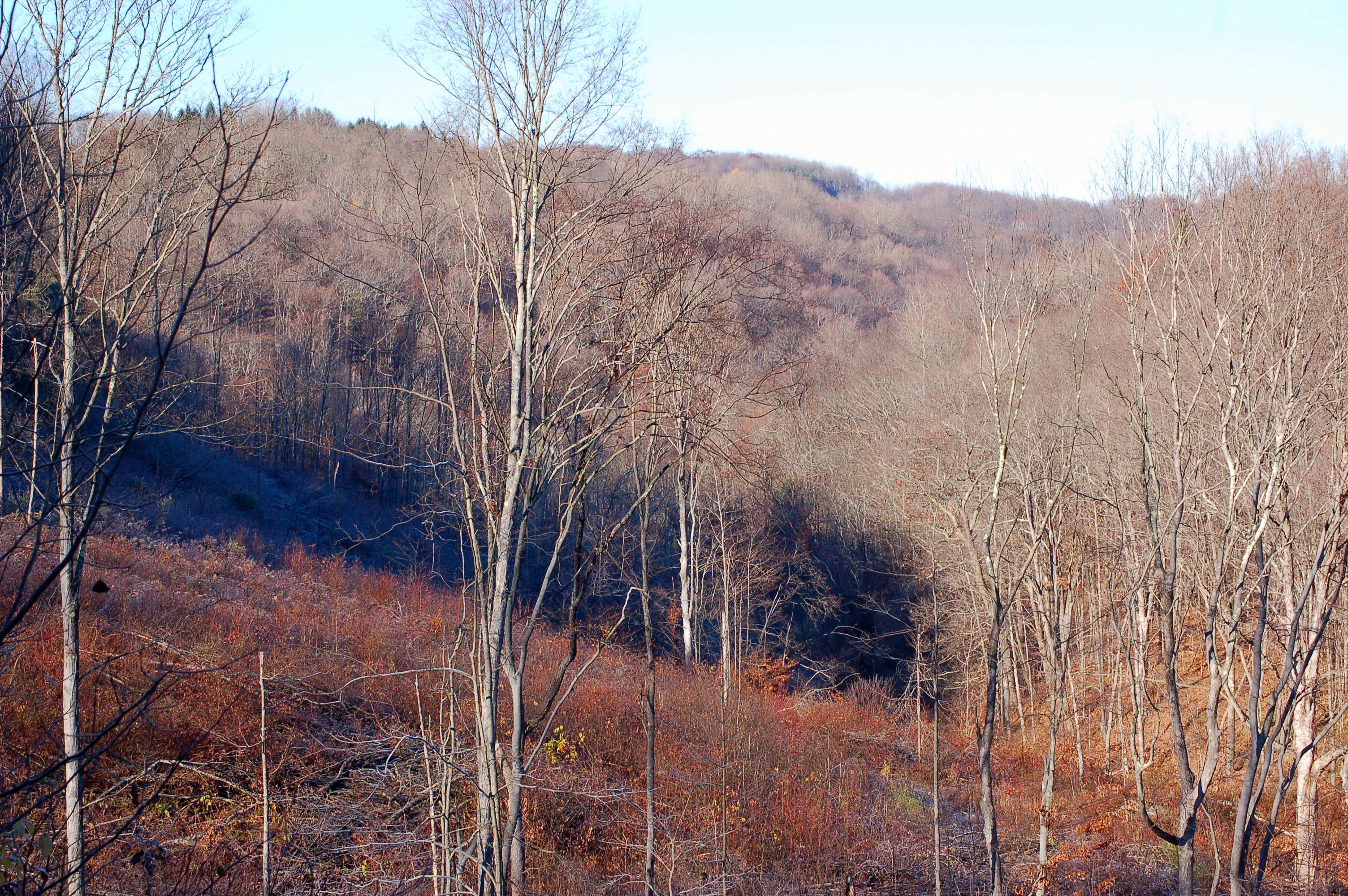I followed a hollow for about one mile, often drifting along old logging roads to explore. Eventually, I cam to a place where forward movement would be thwarted in a big way. Multiflora Rose brambles and lots of them!