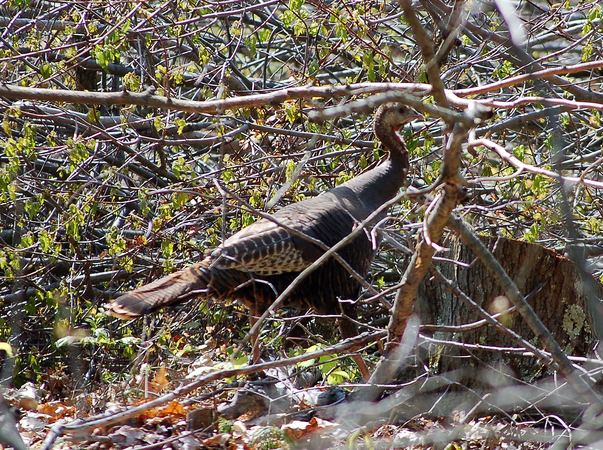 Awww. Friday morning! No gobbling! I quickly headed for a secondary place. I arrived at seven, and slowly worked diagonally along the steep hill. I walked about until about 9:30, and did not hear any gobbling, with one exception.