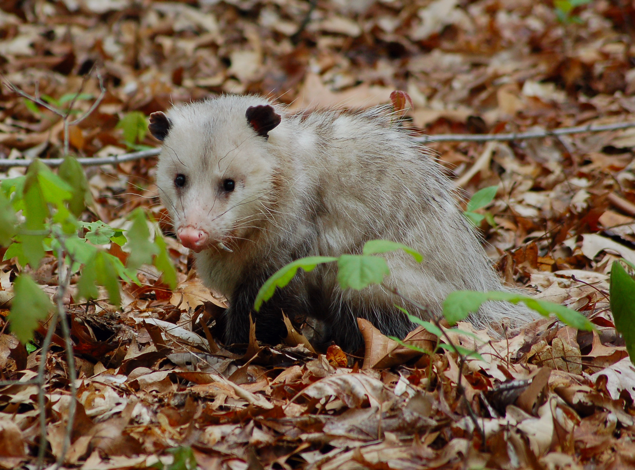 I worked a ridge, dropping downslope and working back. I heard no gobblers. I did see two opossums in the forest. I hunted for one and a half hours.