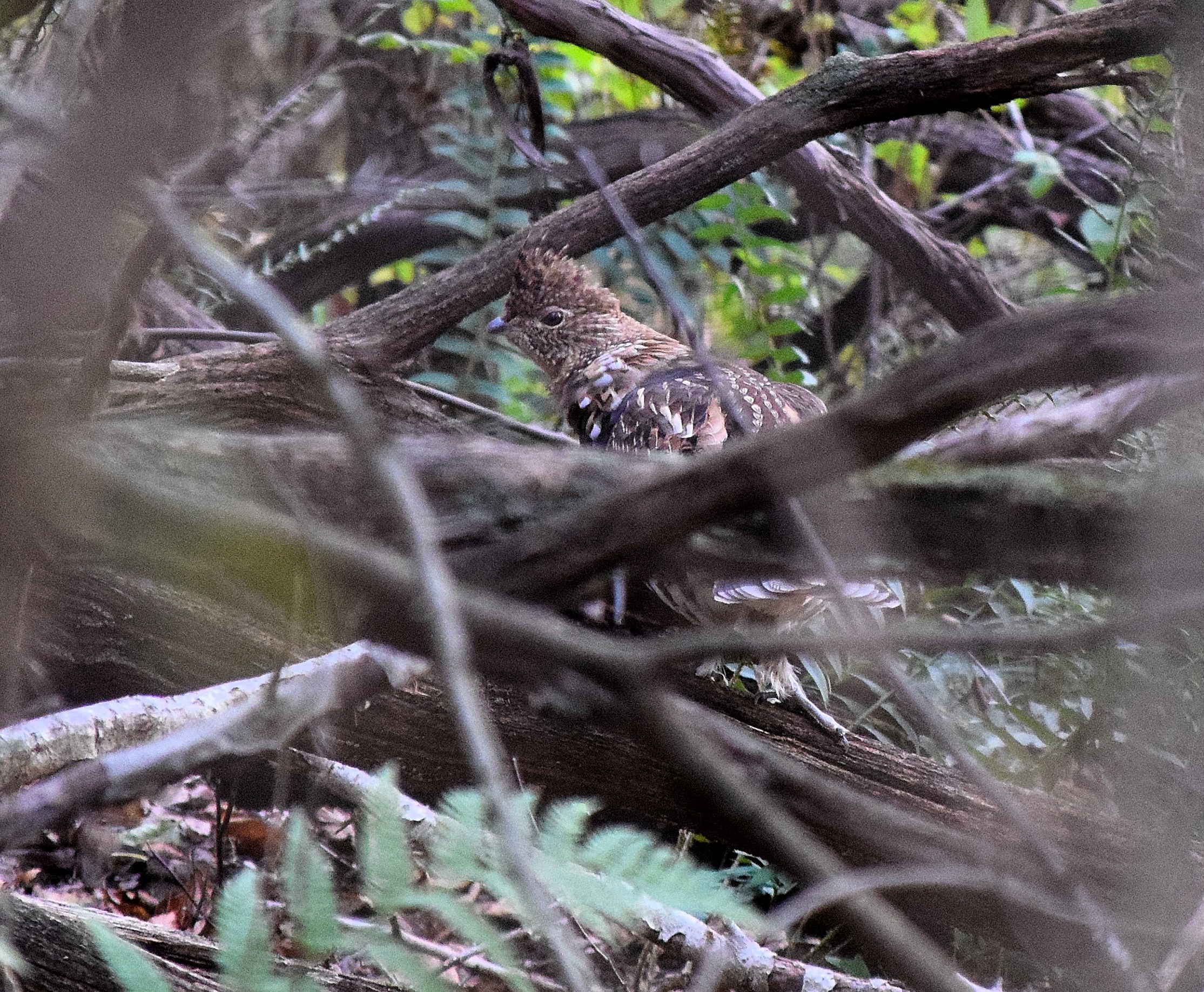I had one great experience this day as I was heading back to the jeep. I heard some rustling of leaves only to see a Ruffed Grouse sneaking along. I managed about six photos, but most were blurry due to all the limbs and vegetation. However, I managed to get two decent shots.