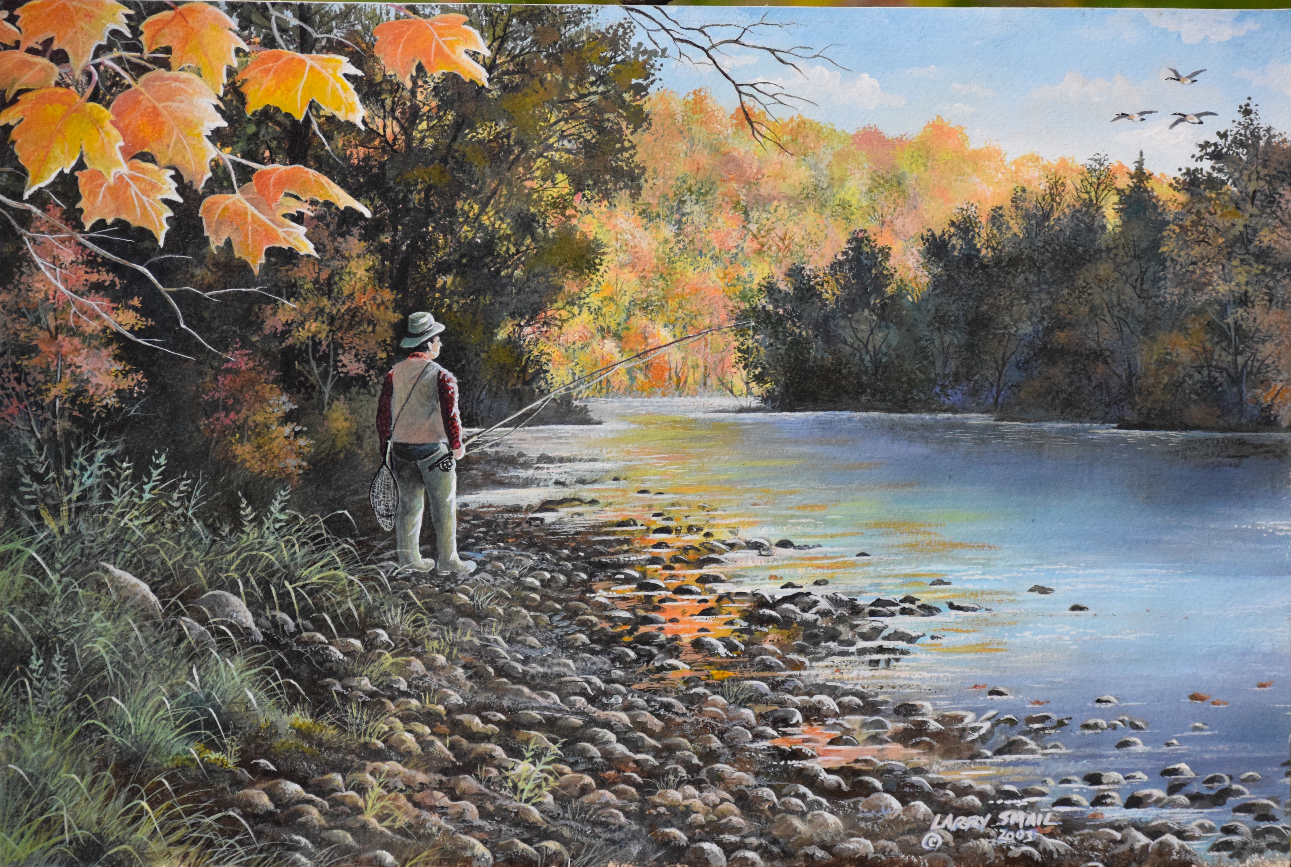The other painting is a 12 by 18 inch acrylic painting done on 140 pound watercolor paper. This art is called “CROOKED CREEK”.