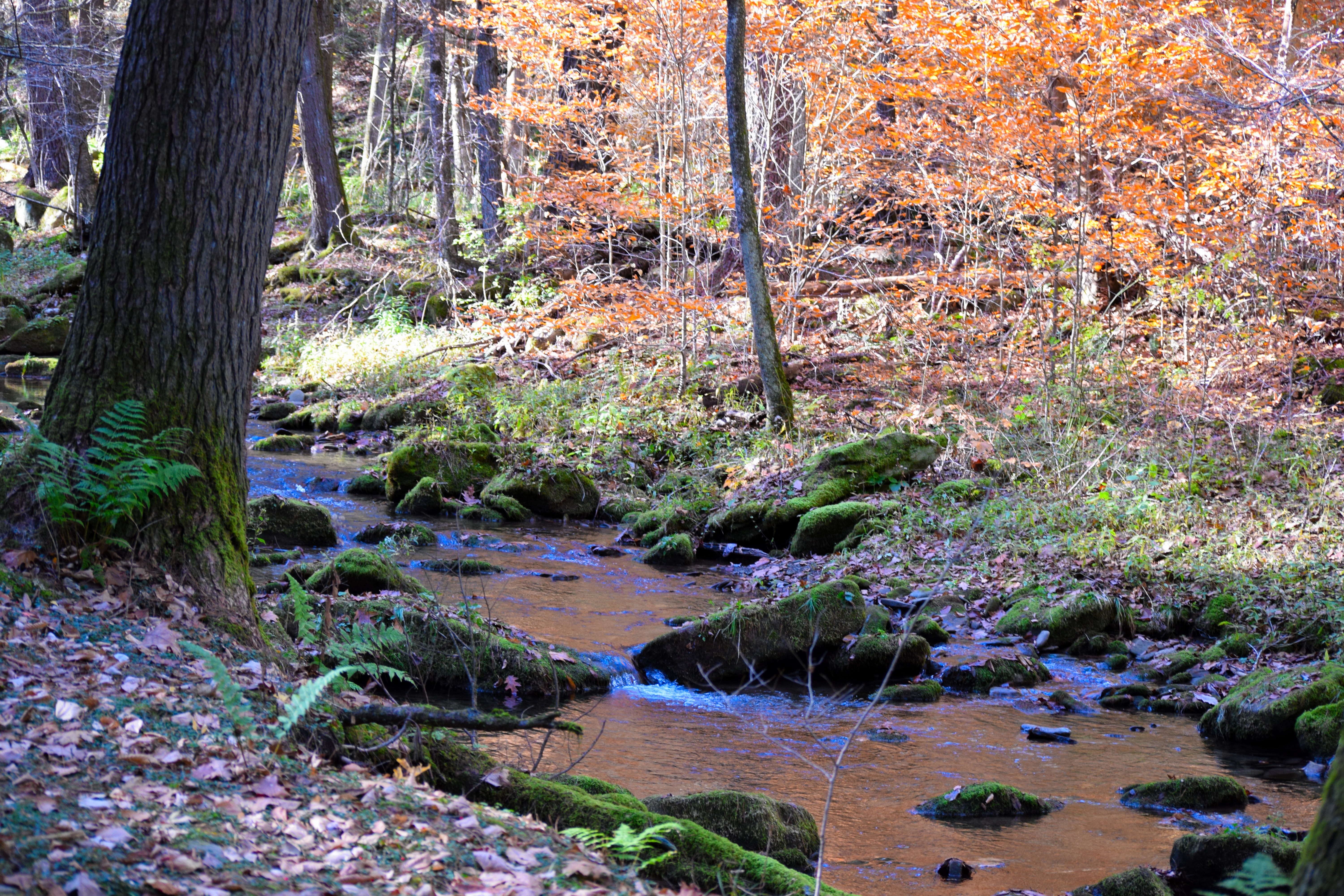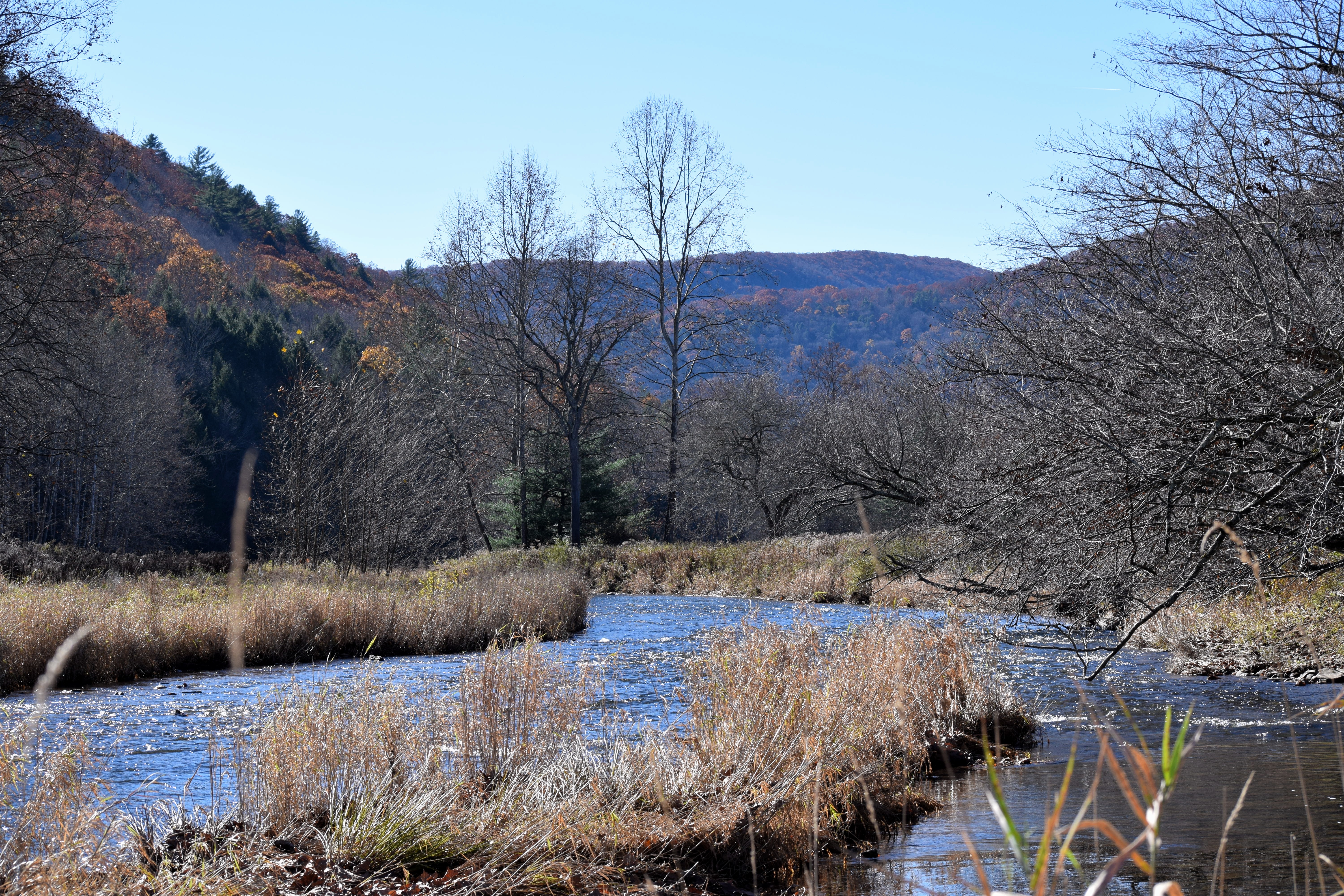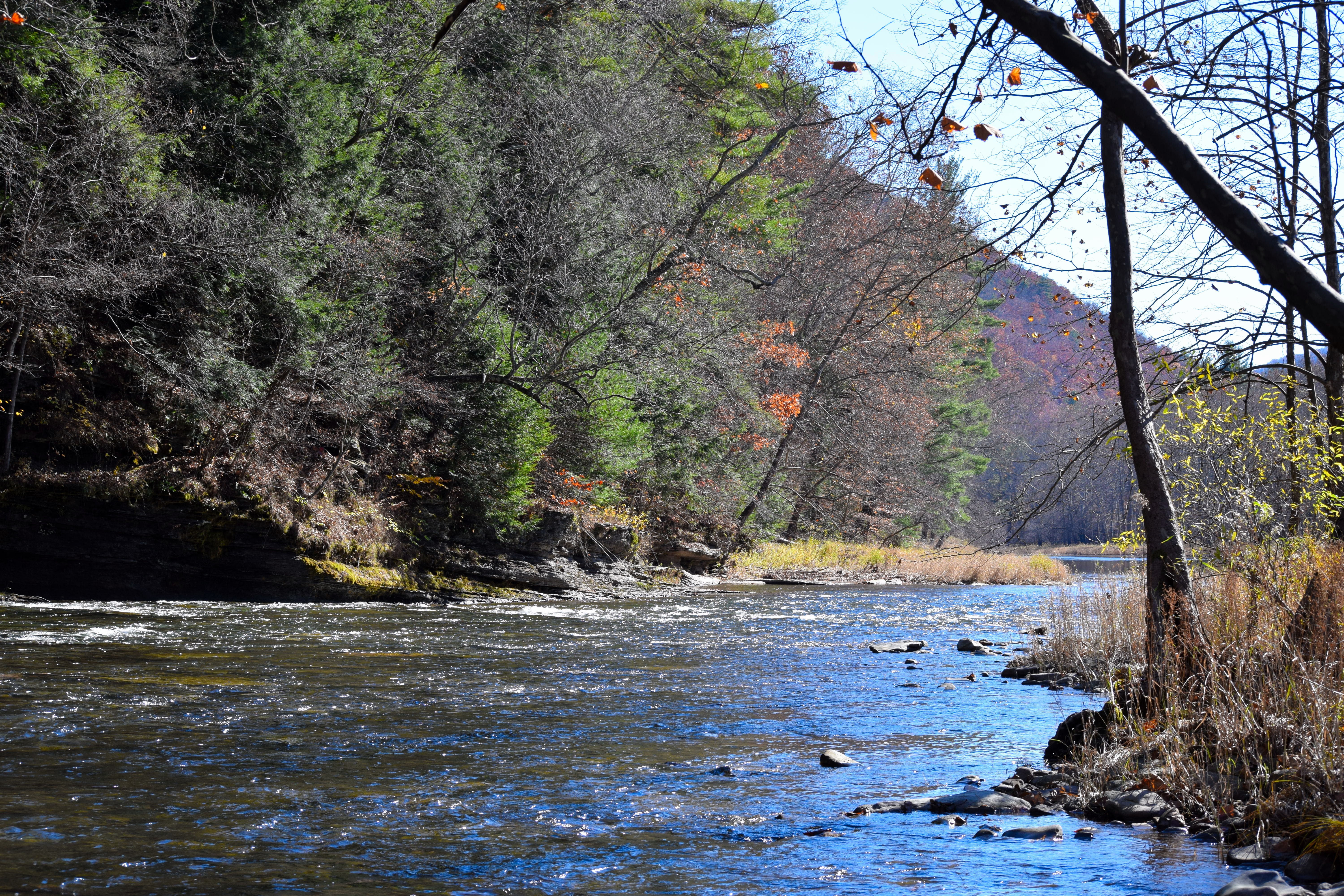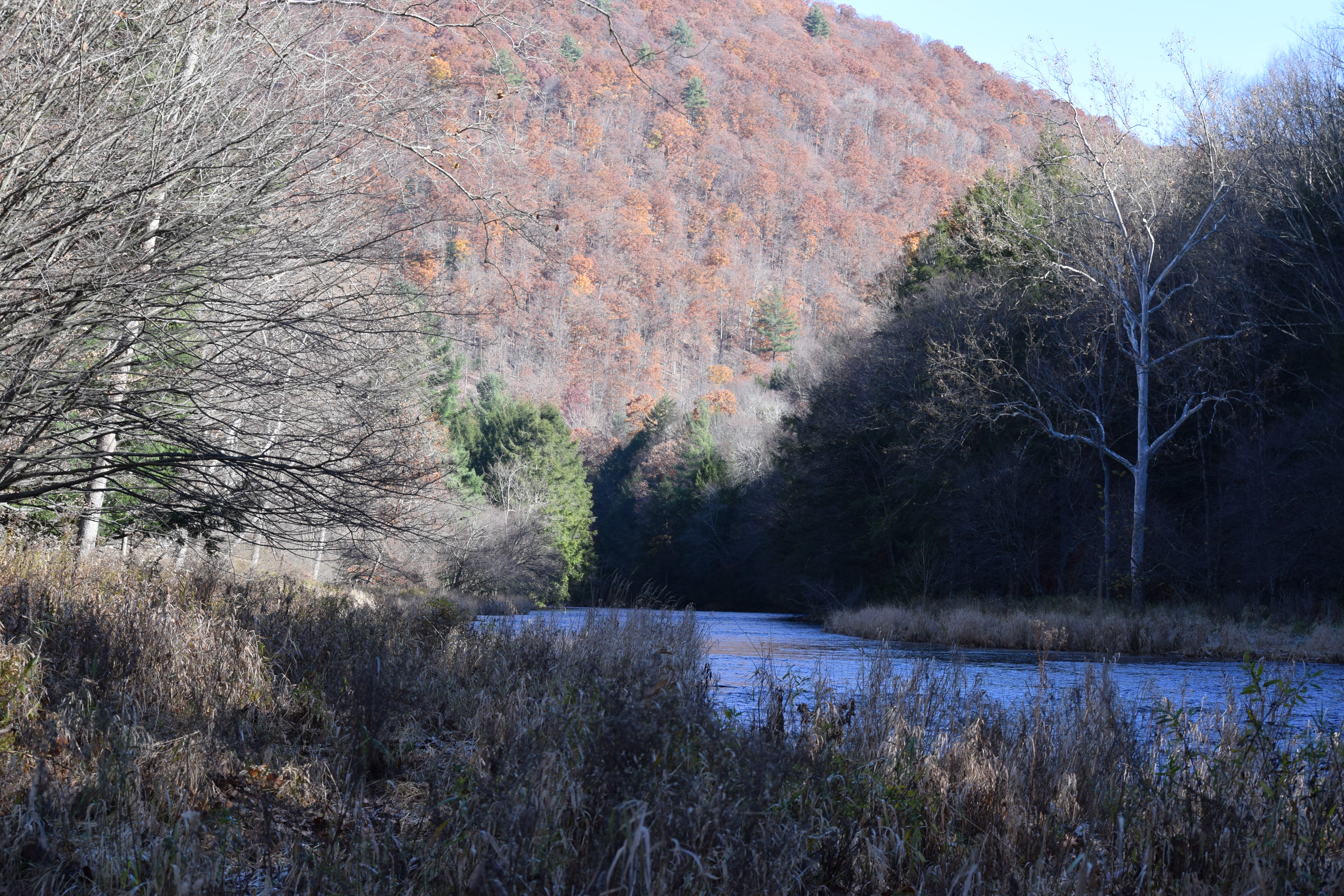 I arrived along the First Fork of the Sinnemahoning around 9:30 A.M. the eastern sun was just beginning to peak over the mountains on my right as I traveled north. The mountains on my left were in sun. Later, in the day, as I began my trip south the opposite was the case. Heavy frost was present at any areas where the sun’s presence was yet to be felt.