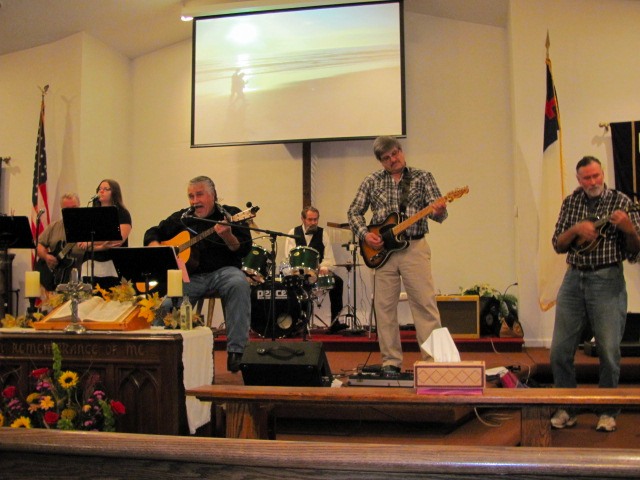 Don and Sherry Townsend play guitar and piano. Their grand-daughter, Rachel sings great! Phyllis S. plays the keyboards. Davey Whitmire usually plays the bass guitar and vocals. Joe Wagner often plays the mandolin and I play the lead guitar. Joe and Davey couldn’t make this Sunday’s event due to prior commitments. (The two play in another gospel band called In Transition.) A guest mandolin player stopped by last Sunday.