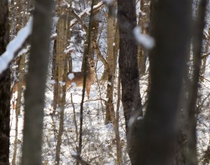 Several times while walking I heard the soothing call of a loon. Eventually I spotted the black and white bird in open water across from the side I was on. I place the camera against a tree and took some photos even though I knew clarity would be lessoned.