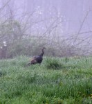 A recent morning was foggy, but the turkeys were already down. I walked up on two and later walked into about eight birds. I
