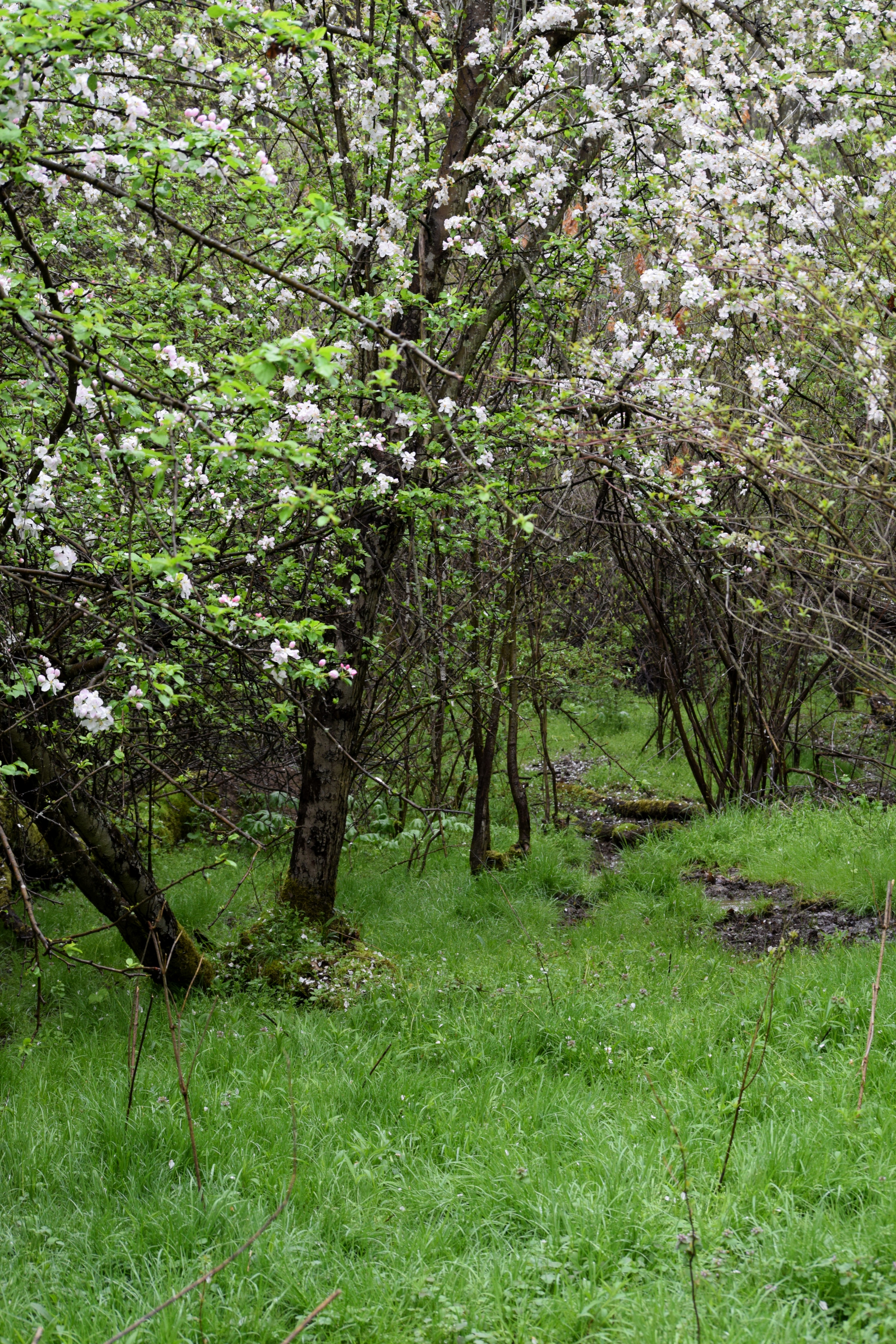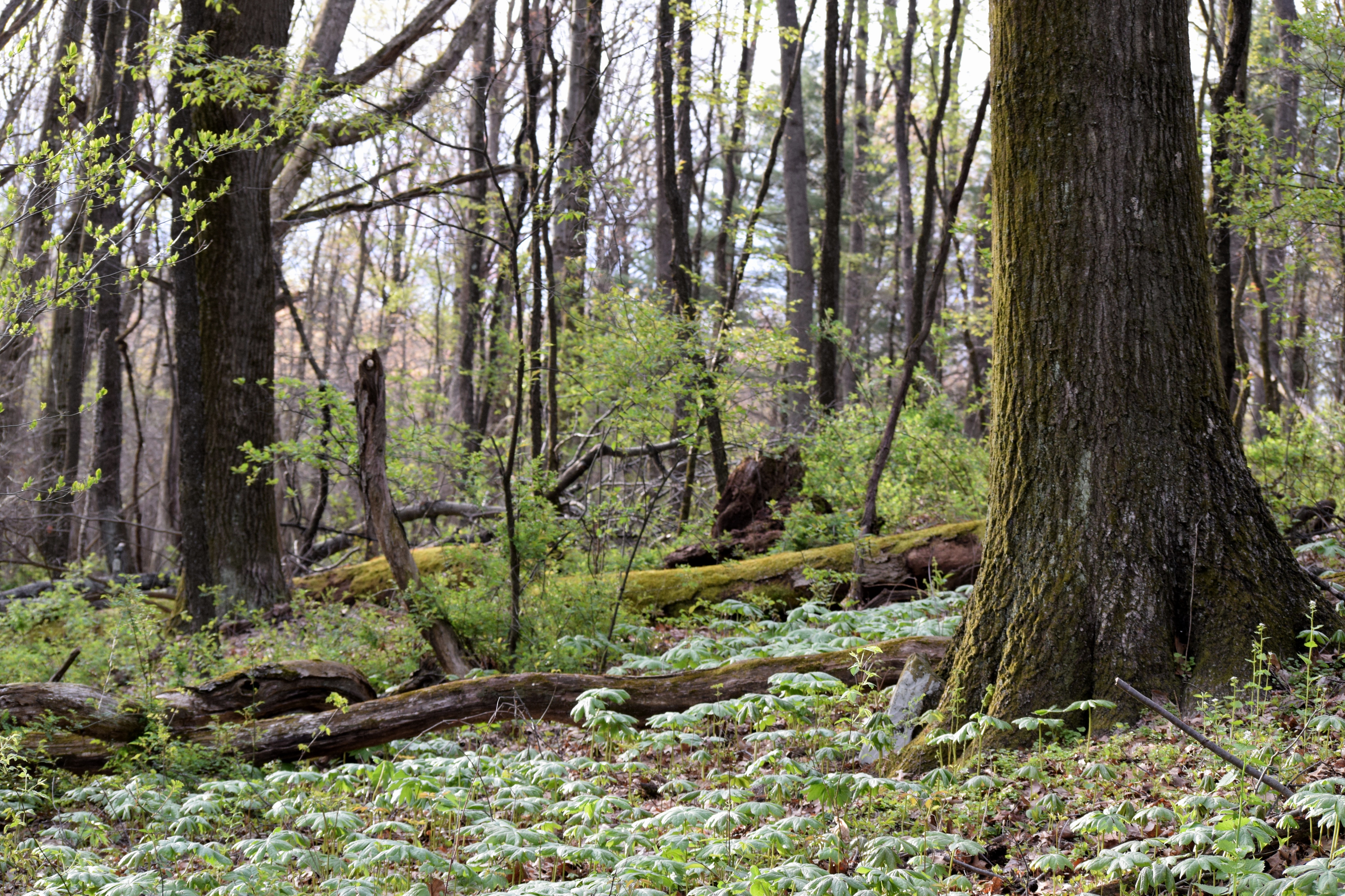crossed a very steep and deep ravine because the White Trilliums are thick enough to almost resemble snow. I wanted to observe. Wild Leek is common in places. Other flowers were the rue Anemones; Spring Beauties and Purple Trilliums.