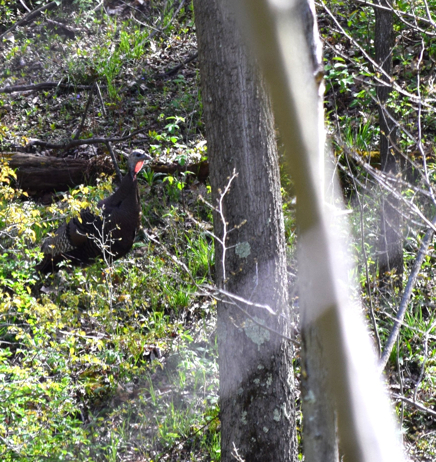 As I reached the opposite hillside I could hear a hen yelping behind where I had come down over the hollow. I called some when I heard a distant gobble in a field behind me. I would ease to the field’s edge and see what I could find. I saw three toms and one hen way out in the field. Occasional gobbles came from these birds.