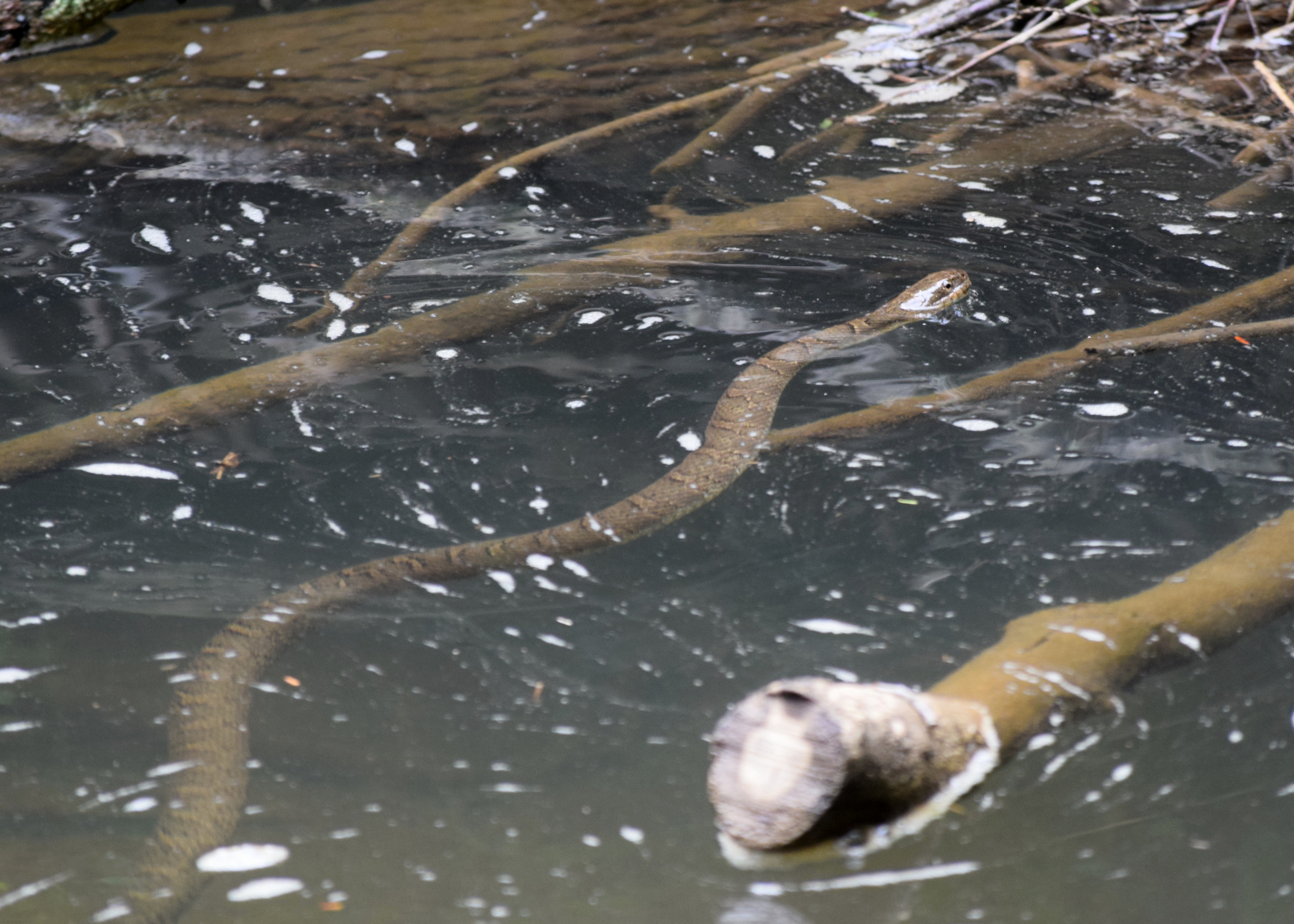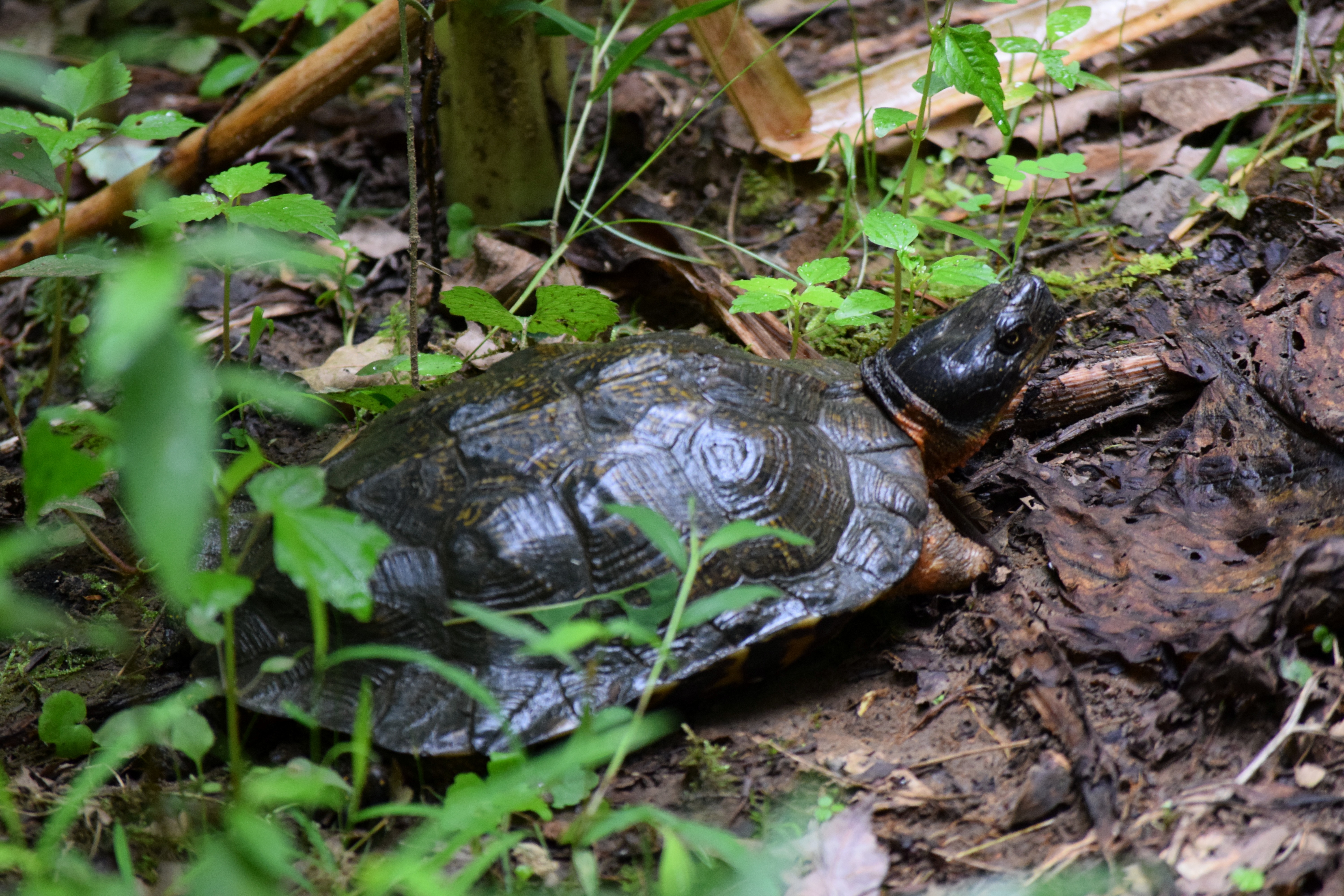 I located two different Wood Turtles. One I removed from the creek bottom and waited for the inquisitive critter to emerge from the shell and head back to the creek. The second turtle was walking along the sandy ground. two handsome water Snakes were viewed on limbs prior to the falls into the water.