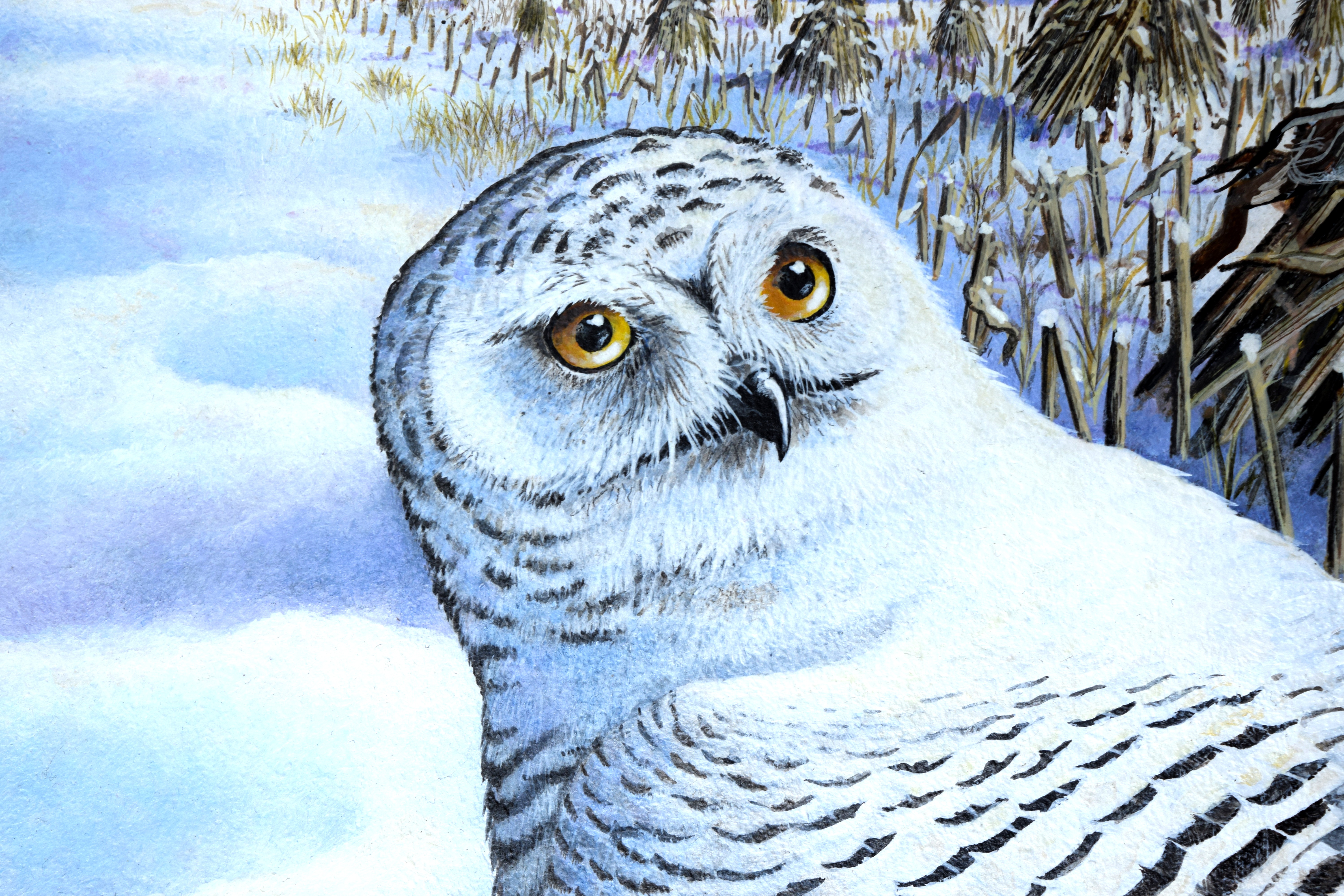 Earlier this summer, I completed an acrylic painting of a Snowy Owl. I painted the piece with hopes of being selected for a print. The painting failed.
