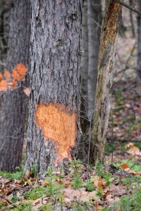 I followed the ridgelines around the hollows periodically checking my topography map. I wasn’t still hunting in the strictest sense of this style of hunting, for I was walking more than standing. However, I did set down for a few minutes to eat some walnuts and drink some juice. I discovered a tree that offered a unique seat. I enjoyed the brief set to rest and eat.