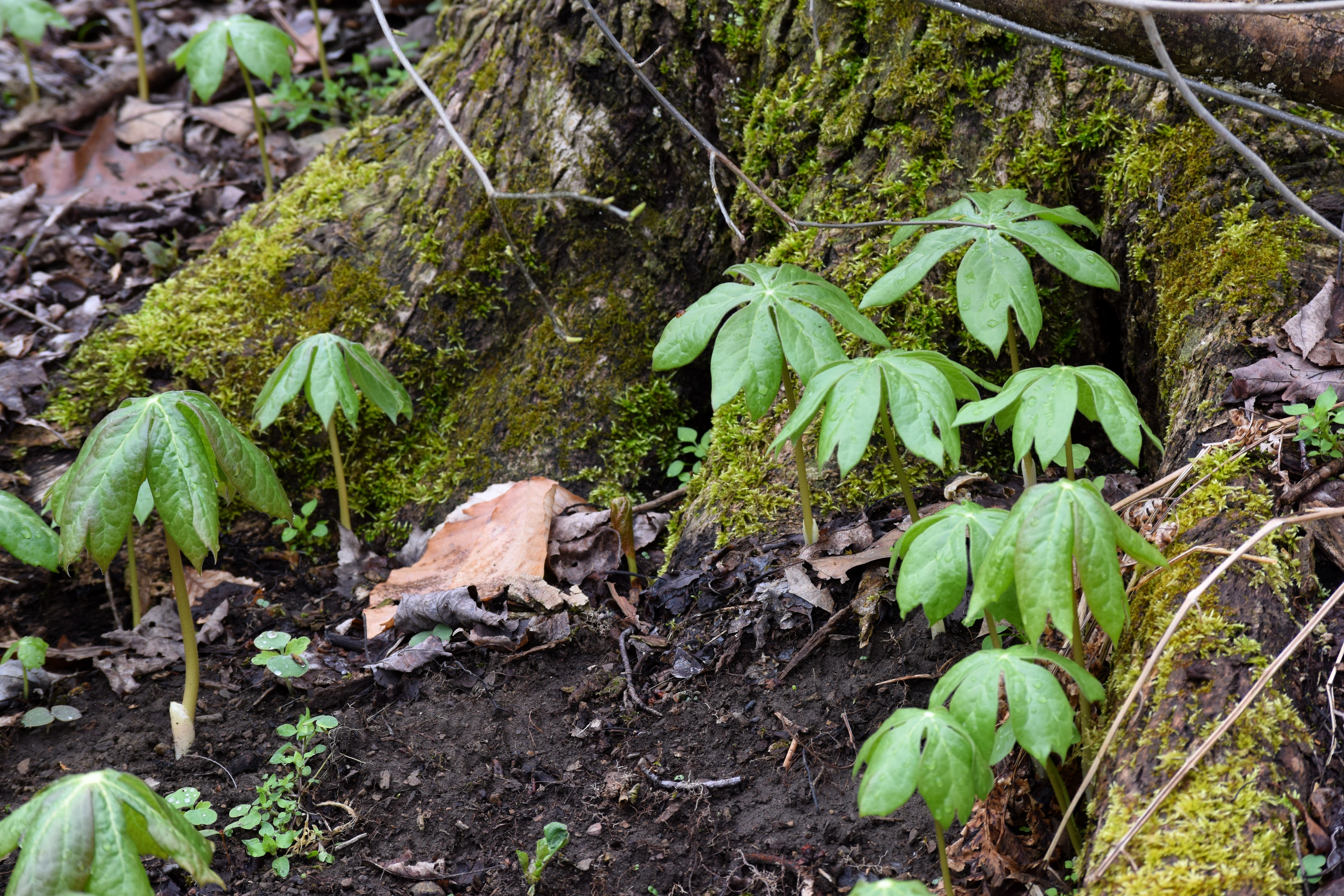 The set up site had some issues. Multiflora Rose was leafed out and between the gobbler and I was a patch of the thick briars. I had to play the dealt cards. Soon the gobbler was within range but out of site due to the brambles. However, an opening was directly in front of me and if the bird moved a little I may be able to see him clear. A second issue soon became apparent. There is a shallow sway along this gas line road.