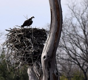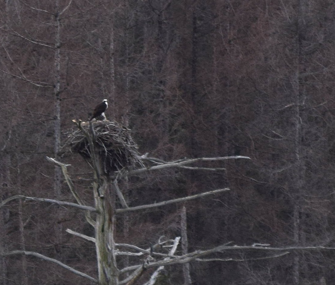 The other site yielded an Osprey nest with a pair of active birds in the area. Last year this nest was surrounded with water, but not this time. The enclosure had been drained due to Beaver damage and is scheduled for repair completion later this year. Despite not having water all around the nest the birds returned as they have in past years.