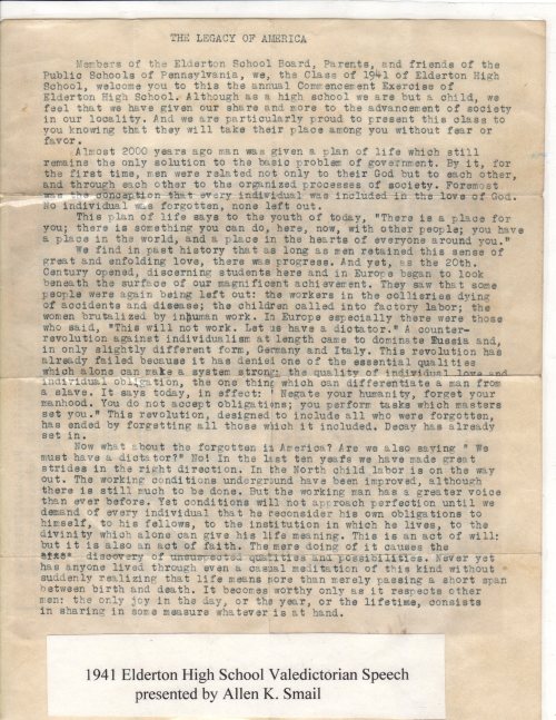 My dad was in a car setting at a gasoline pump at what was then Reedy’s Store just east of the Cherry Run intersection. He heard that the Japanese had attacked Pearl harbor. In 1942 he was off to basic training and England. He was D-Day 13 if I remember correctly. he would be in France, Belgium, Bavaria, and finally Germany. He returned to Kittanning in the fall of 1945 after riding a train out of Pittsburgh. He began the long walk home to Cherry Run, probably around eleven miles. However, by chance a family from nearby his home would pick him up.