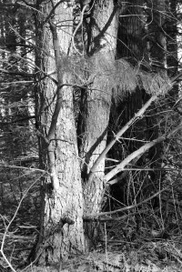 The wildlife must have “holed up” for I didn’t see much except for one deer and various small birds. I walked old common roads, trails and woodland areas. I looked up on occasion to search for Great-horned Owl nests. Finding their nests can be difficult, but if you do walk upon one they are often easily discerned. Nests can be quite large at times.