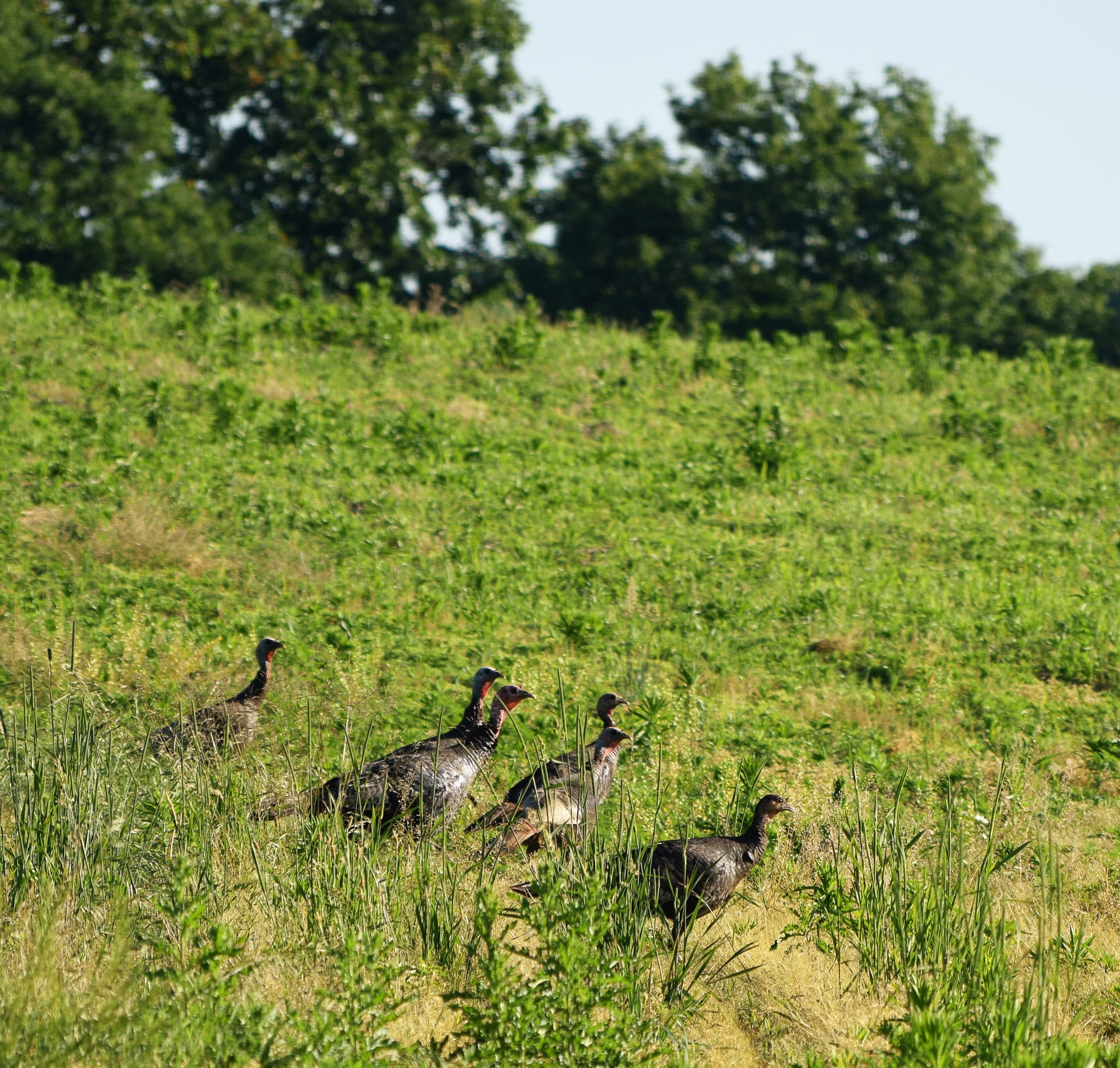 Wildlife was plentiful this morning. I saw deer, a doe and her new fawn, several flocks of turkeys, and a Great Blue Heron.