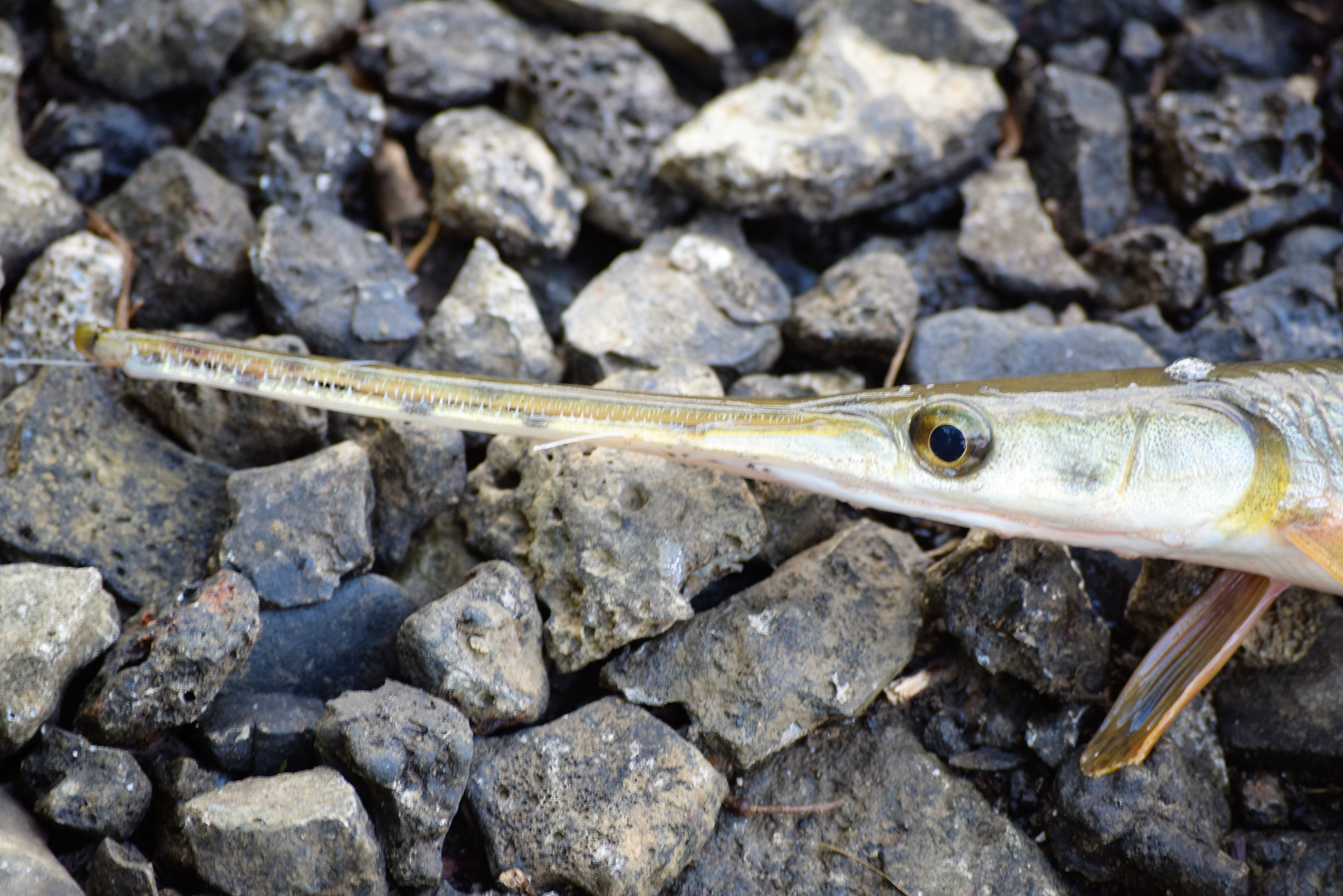 Interestingly, I believe a school of this specie must have been in the area, for I missed some fish bites. These bites were hard with a heavy pull and a strongly, bent rod. At some pint after catching two, I began to think some of these misses may be other gars. I even tried dropping the bail and allowing the fish to take off before settling down a bit. The fish would take off again and I would heave and fail to catch.