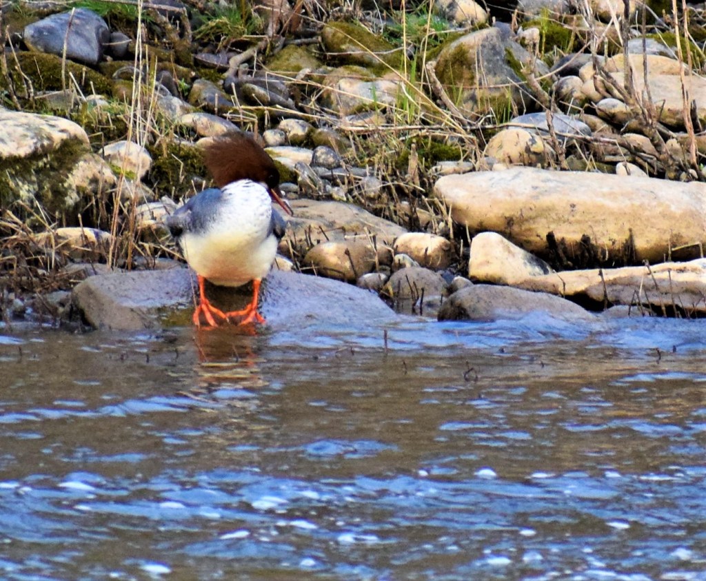 I went directly below the dam in Kittanning, Pennsylvania. I found the currents much too wild for me. I casted twice and snagged twice. I mover farther down the river and eventually found an area shielded from the current. I caught a catfish. I saw an immature Bald Eagle being harassed by a crow. I spotted a few Common Mergansers.