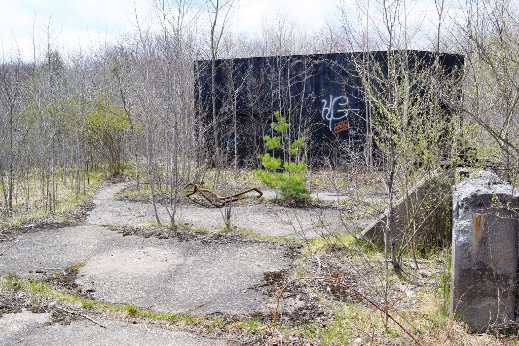 Today, the paved roads are growing over as well as the areas around the bunkers and other cement remnants of those days. Many birch and aspen trees cover the property today, as well. In face we saw a Ruffed Grouse launch from these thickets. This is perfect grouse habitat now. Nature is reabsorbing the lands.