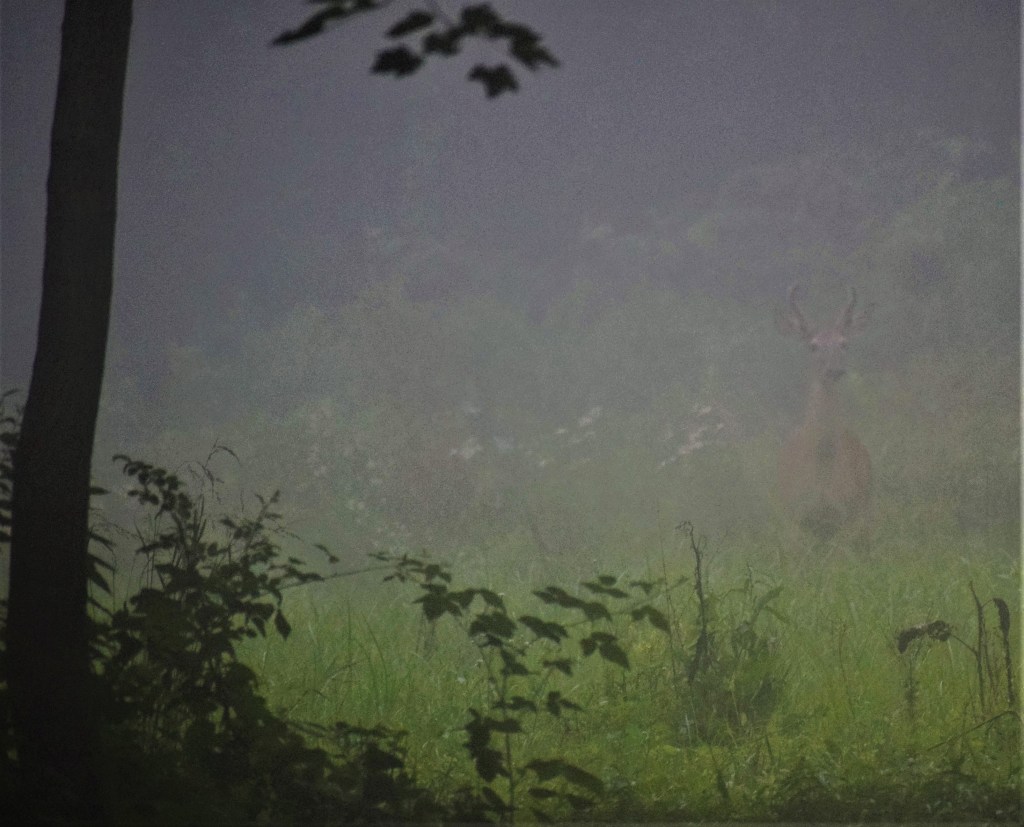 I was fortunate to see some wildlife this morning. I saw eight different deer and three buck. Two were running together in the fog and I managed one decent photo of one standing in the fog watching me. I saw two turkeys feeding along the woodland edge. I saw a Great-horned Owl fly out of a tree. if I would have been faster I could have managed a possible in-flight shot. Rabbits were out and about, as well.