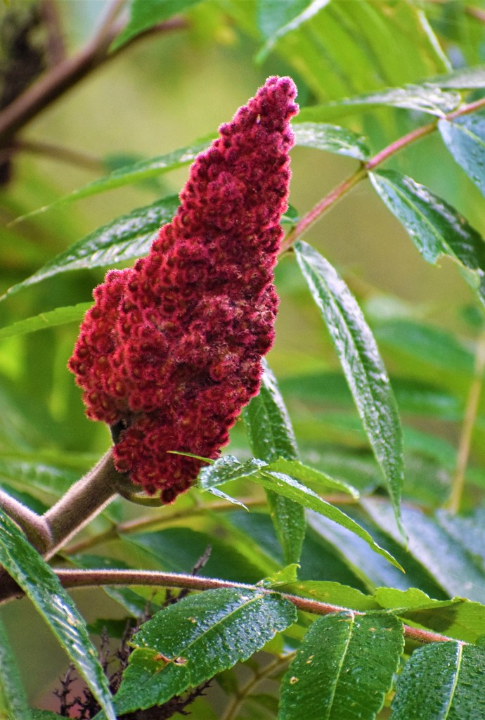 the Staghorn Sumac received the name due to the limbs having a velvet-like texture resemebling the antler’s of male deer