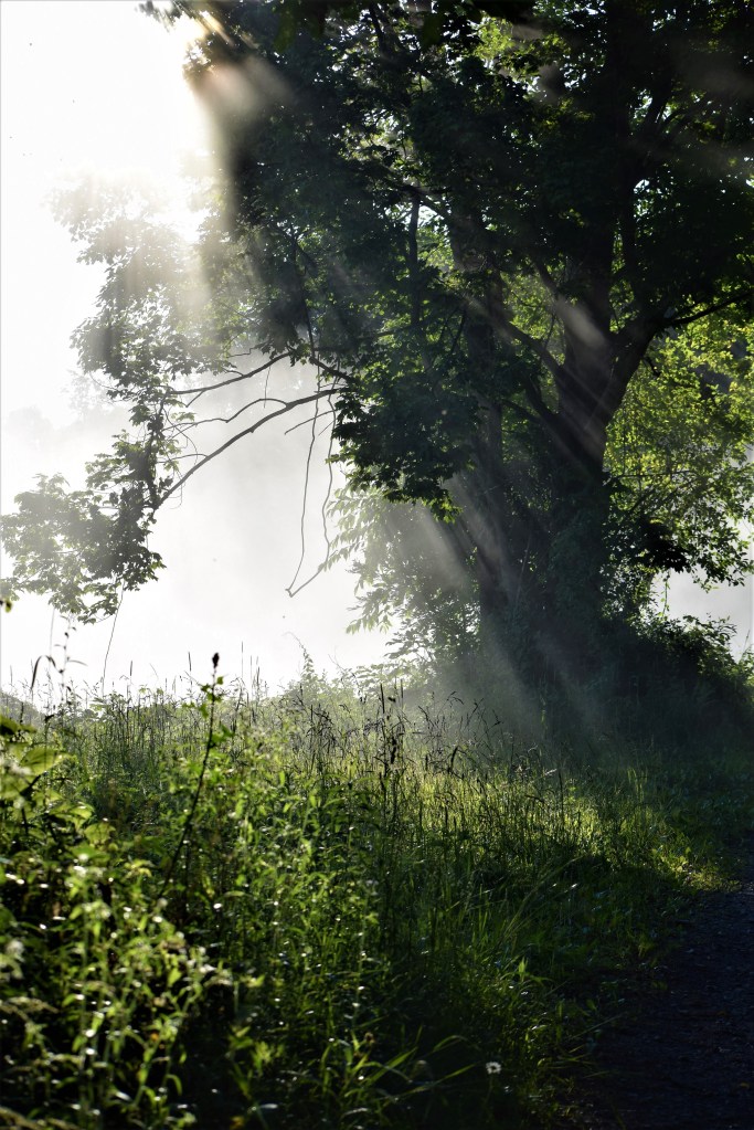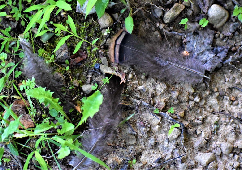 Very early in my hike the fog was obvious. The thickest fog was east of my position in the direction of the Allegheny River. I began this trek following an old gas well road within the confines of a state game lands. I did not travel very fall when the road was very obscure and covered with chest high grasses and timothy plants. I went about a hundred yards and decided to reverse course and hike another area. The heavy dew on this vegetation felt like a cold glass of water being thrown upon my legs with each step…uncomfortable feeling at best. I found some turkey feathers while walking out and wondered what may have occurred at the site.