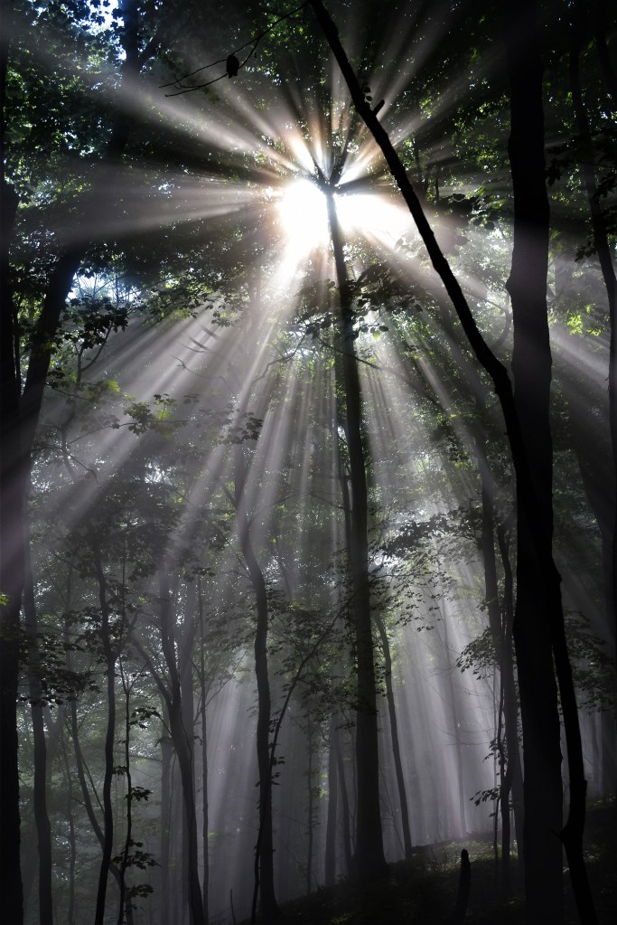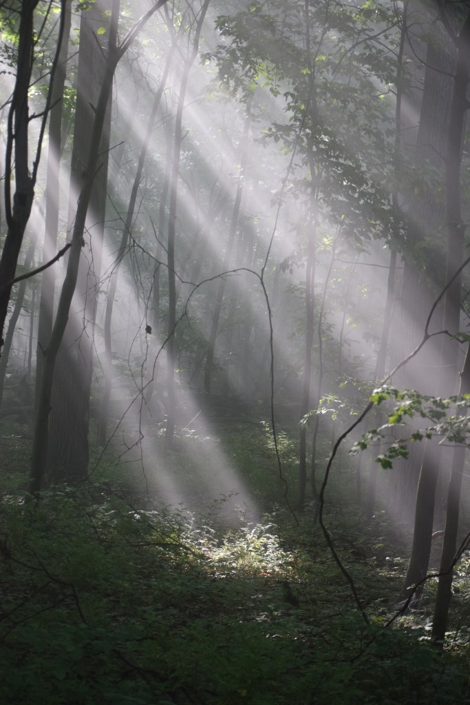 The change in a more north-easterly direction eventually placed me along the ridgeline of a very steep “river hill”. The thick fog was being permeated with the morning sunlight. My positioning was perfect, so beautiful was this site, I sat down to enjoy the view. I took a number of photographs from this ridge. This was one of those, “I hope this never ends” moments.