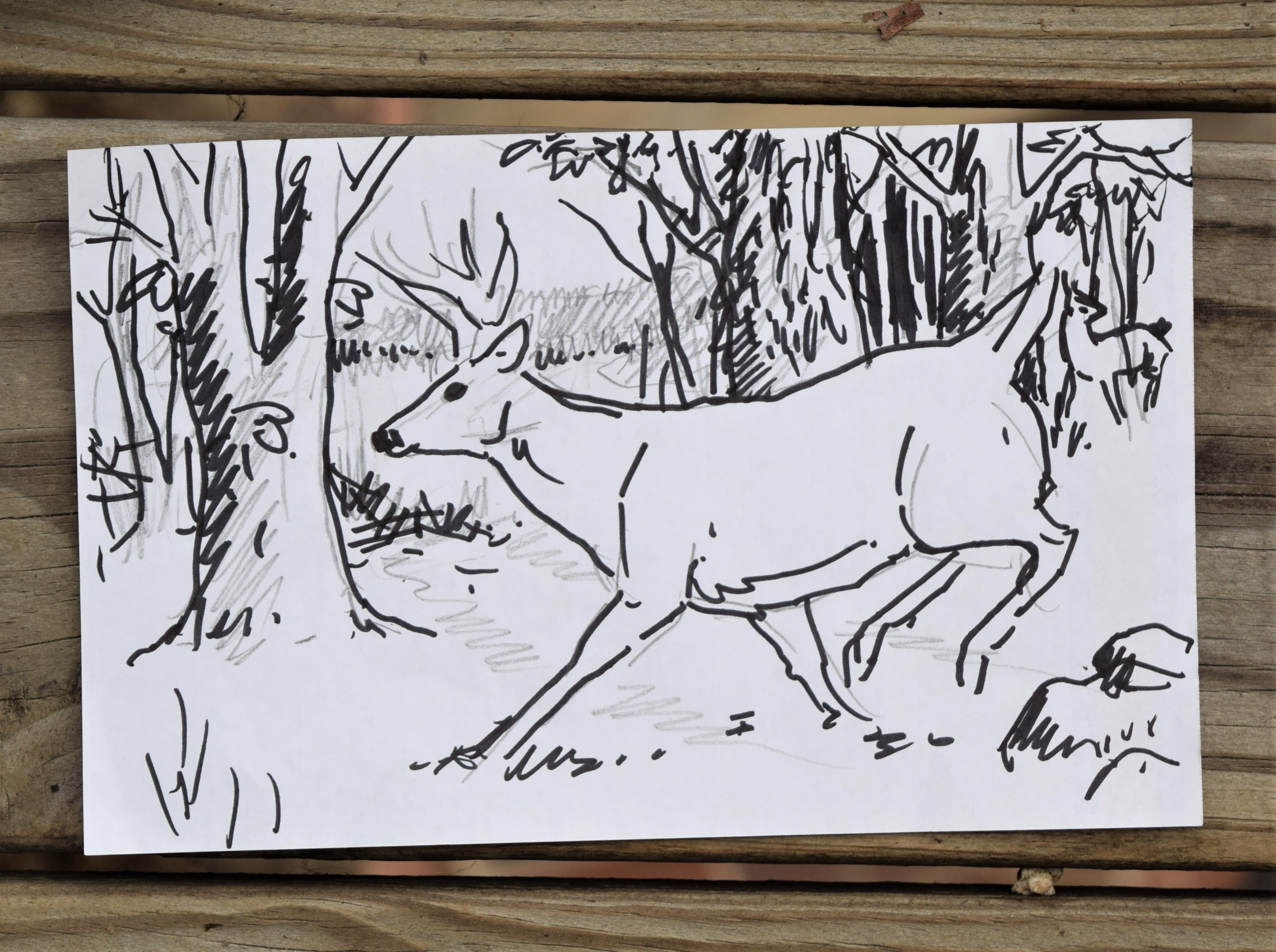 It is up to viewer to decide what the deer are escaping from. Was it a human? Was it a coyote? was it a much bigger buck challenging this buck? It is up to you!