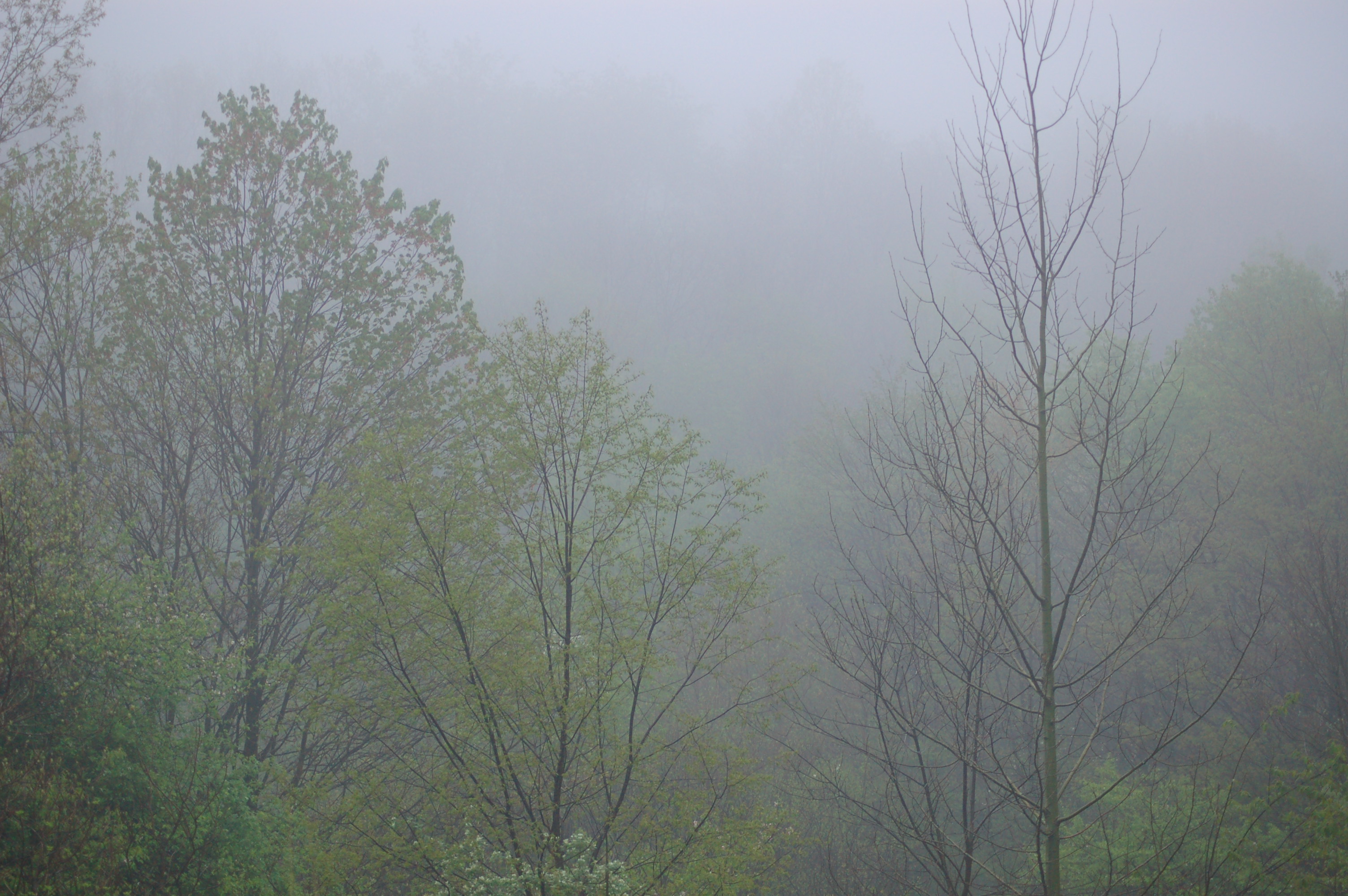 I had seen some baby ground hogs with their parent. I had heard many species of warbler music, yet the big birds were not vocal at all. The fog was lessening as I drove home.