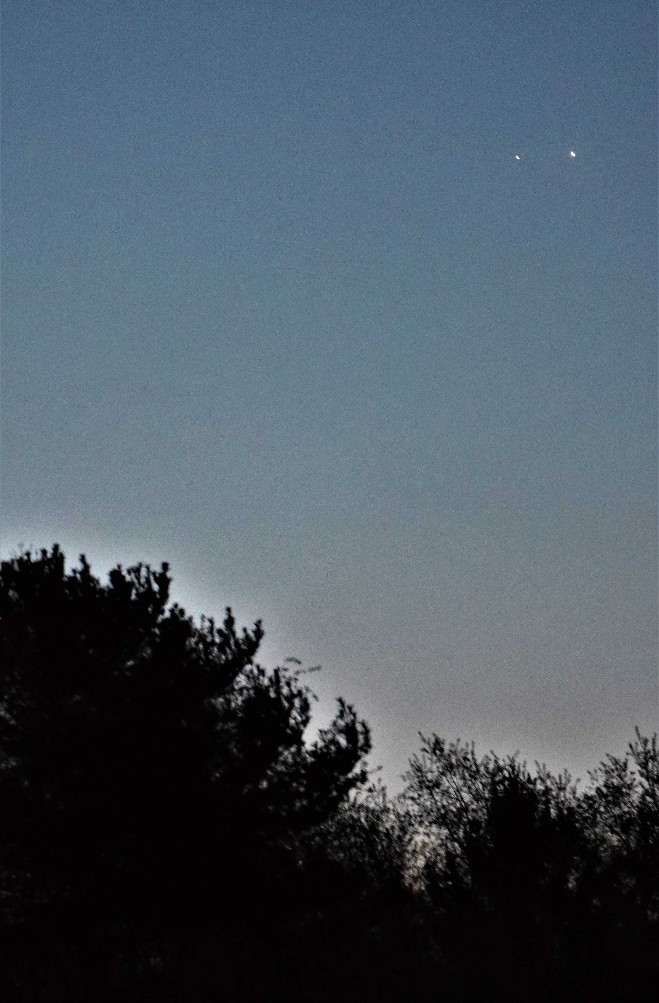 I watched an interesting celestial sighting early in the pre-dawn moments. The planets of Jupiter and Saturn were in close alignment. I had to try to photograph this sighting.