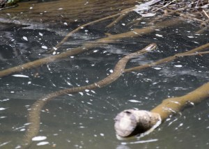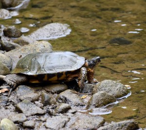 I located two different Wood Turtles. One I removed from the creek bottom and waited for the inquisitive critter to emerge from the shell and head back to the creek. The second turtle was walking along the sandy ground. two handsome water Snakes were viewed on limbs prior to the falls into the water.