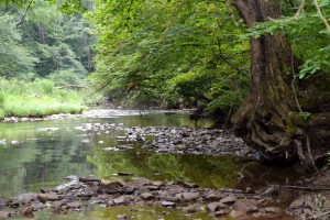 I walked down over a hill to the stream and began to walk with the flow of water searching for photo opportunities and wildlife. And yes the stream is beautiful! I had on boots that went to mid-calf and much of the time I could find a route to avoid wet feet. Several times I needed to go over the embankment to circle deeper areas. I saw only one trout. The water was low for the most part and deeper holes were scarce. The water was clear and only the deeper holes failed to see bottom, well.