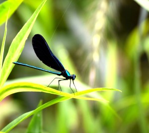 I saw a lot of Cardinal Flowers growing along the water course. This flower grows deep along creeks and rivers, but I didn’t see any more than ten feet from the water’s edge. That seems to be the norm from past encounters. I saw a lot of Damselflies fluttering along the vegetation. the actual name for this species is Ebony Jewelwing.