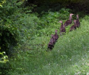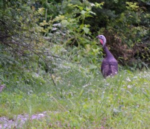 I saw two deer on the walk. One fawn was bedded down in stream-side vegetation and erupted only when I was about twelve feet from the bed. A second deer was wading the creek, but tree limbs avoided any chance for a pic. I would see two hen turkeys with poults. Just how many poults is anybody’s guess since all I could see of them was moving vegetation.
