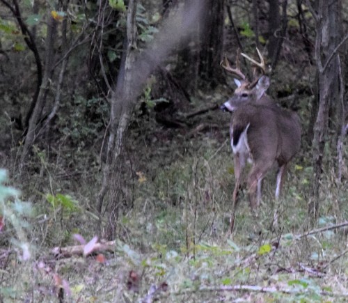 It was great being out hunting on this first day of Pennsylvania’s early muzzleloading season. I saw fourteen deer in the five hours I was out hunting. Obviously, some were the same deer being viewed at different times. In fact I saw two bucks and I saw them three different times. The spike was chasing a doe.
