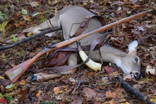 The doe he was following stopped about forty-five yards from me. Unfortunately, for me, I had made a pact this morning to limit all shots to under forty yards. Those who follow these entries should remember the fiasco I was having last year with my eyes and seeing sights properly resulting in ten failed shots. This year I had added a peep sight in place of the primitive ones. Also, I had a pair of glasses made without the bifocal lens. I am feeling somewhat confident, but wished for a clean kill to regain all confidence. One could call this a “Shot for redemption.”