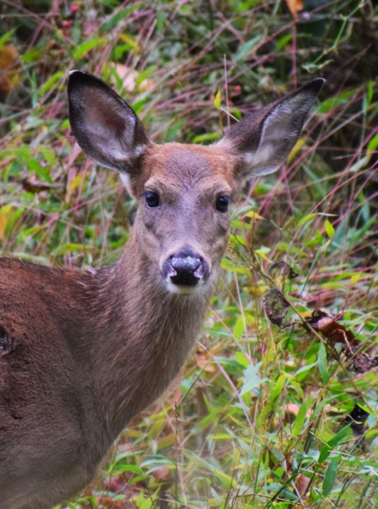 The first day of October 15 had twelve deer observed including two bucks. This muzzleloading season only permits antlerless deer to be harvested. One small doe came past me at twelve steps, and I decided I wasn’t going to take a small deer. I took photos of this deer instead.