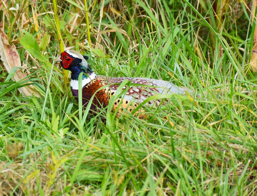 This very windy day howled through the trees. I heard some loud cracking of a falling tree. The sounds were not far ahead. As I followed the occasional cracking, I soon located a tree. The tree was leaning at about 75 degrees with the limbs entangled with neighboring trees. Every few seconds it would crack until the support trees could no longer bear the weight allowing the tree to crash. That was an interesting observation. I walked upon a flock of seven gobblers allowing for a few photos as they fed in the high grasses. I heard a Screech Owl in the dark hours. I became entangled in a very thick timbered area. That takes the fun out of hunting as each step allows for briars to dig into one’s flesh. I left early enough to prepare to do acoustic music at the Kittanning Free Methodist Church. An event is held there twice a month known as God’s Choice for those of special needs.