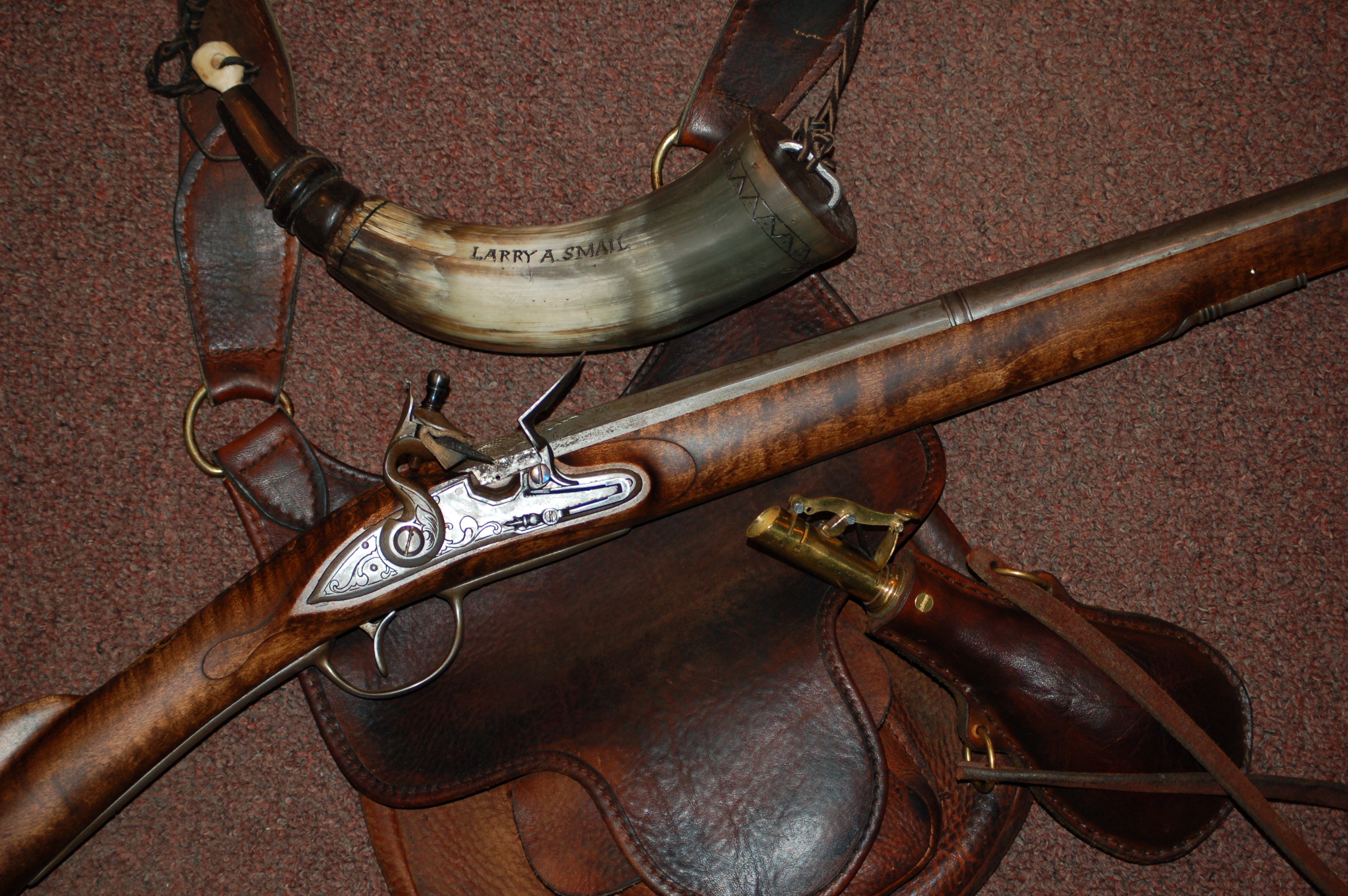 I used “Old Jacob” on this hunt. This is a style of flintlock rifle made in the 1780 era by Andrew Verner of Pennsylvania. It is a 50 caliber flinter. I have harvested a lot of deer with this firearm. Notice this gun is a rifle. This means the barrel has “rifling” in the barrel to stabilize the lead ball for better accuracy.