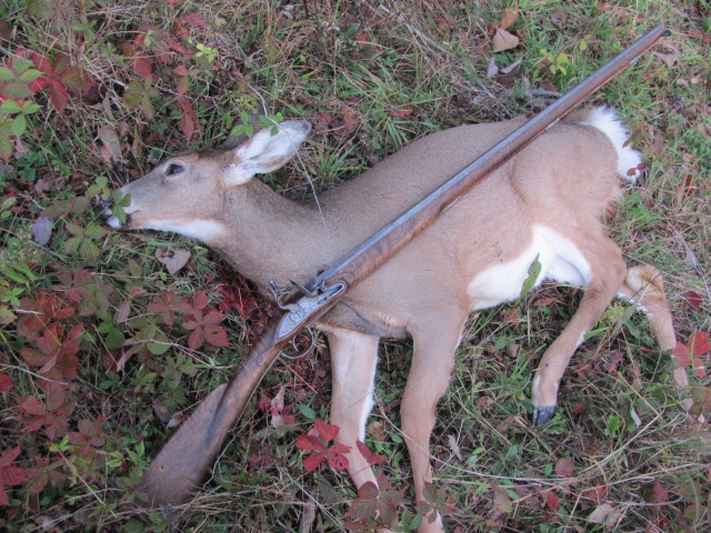 Prior to nine in the morning, I spotted a doe in the dogwood; crab apples and goldenrods. The deer was around forty yards or so. I believed it was closer. I leveled “Jeremiah” and missed! Jeremiah is my .62 caliber smoothbore French fowler. The original style dates back into the latter eighteenth century. I have killed deer with this firearm in the past, but I still mess up on occasion. The smoothbore doesn’t have a rear sight. One has to get the check down on the stock and aim true. Any slight deviance of this and the shot can, easily, fly high, or low. Also, smoothbores are not a long range gun of accuracy. the barrel, as the name states, doesn’t have rifling grooves in the barrel to stabilize the lead ball. Accuracy is easily faltered by this at yardages of over forty yards. Whatever happened…I missed!