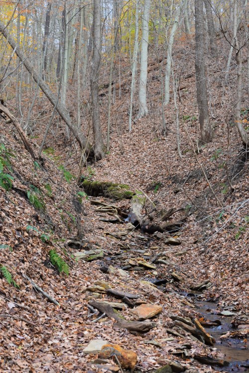 Once I realized my initial plan was not going to happen, I circled and went down slope at an angle believing I would soon run into them. I reached the bottom of the hollow and began a diagonal trek in an attempt to find the birds. I met another turkey hunter and we chatted some. He didn’t see them walking through anywhere. He had to go home, and I continued with my plan. I didn’t go very far when I saw an archer in the tree. I apologized and aborted my plan to continue on.