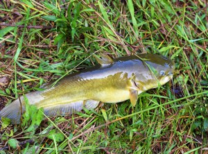 Eventually I came to the pond and settled in for some fishing. I was not disappointed for a caught plenty of Bullhead catfish and a Pumpkinseed. During my time along the bank, I spotted a Snapping Turtle checking out that strange mass on the shoreline.